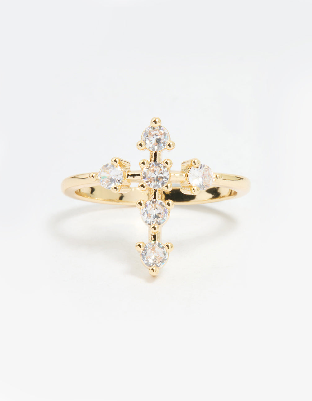 Gold Plated Cubic Zirconia Cross Ring Gold Plated Cubic Zirconia Cross Ring Gold Plated Cubic Zirconia Cross Ring