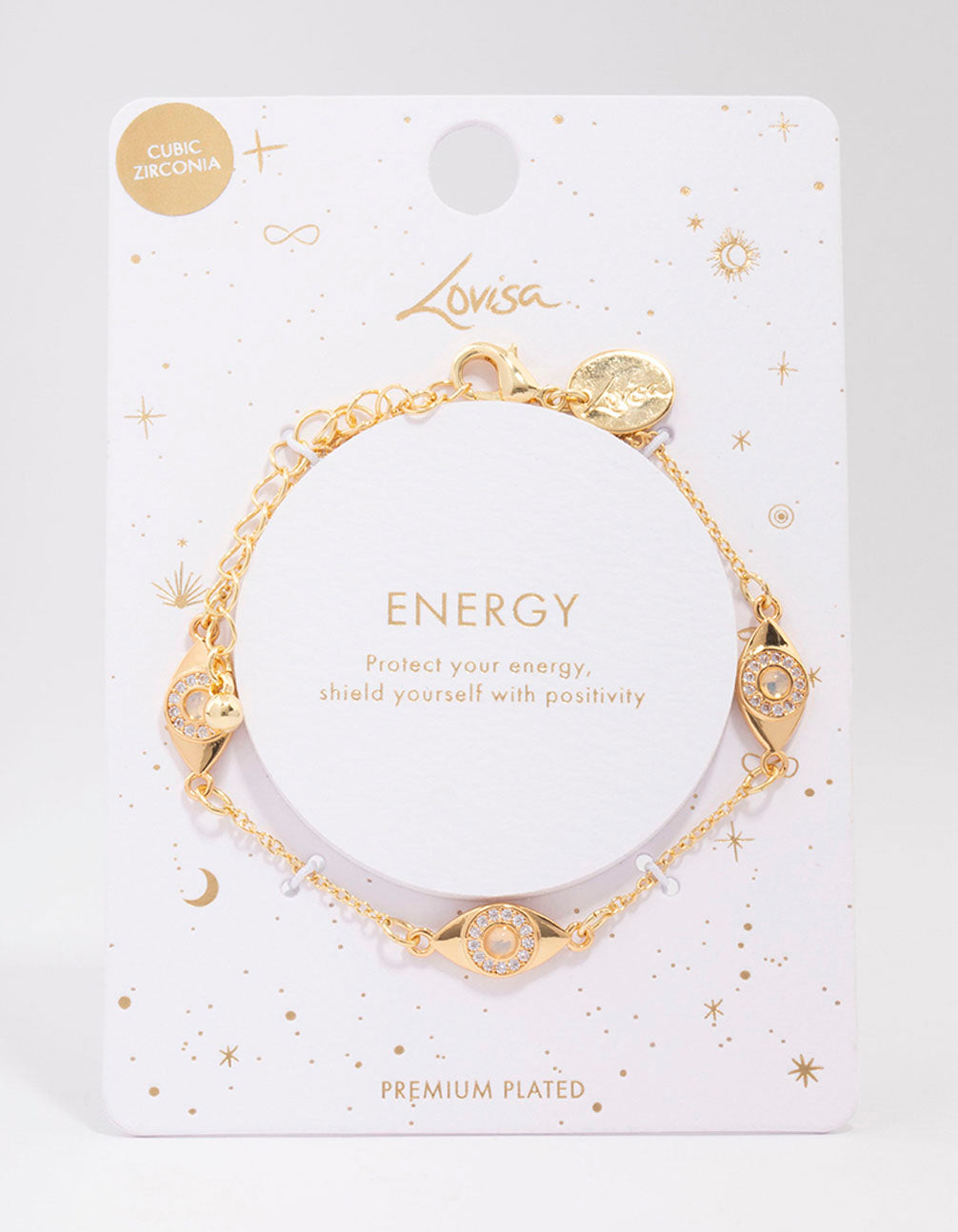 Gold Plated Cubic Zirconia Evil Eye Station Bracelet