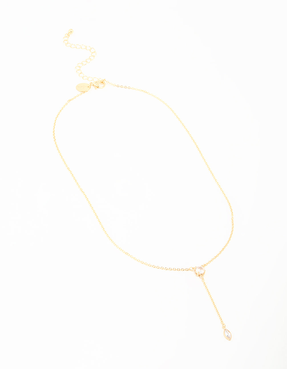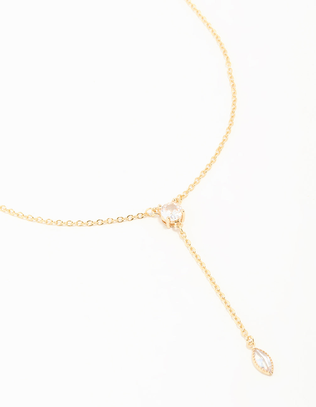 Gold Plated Cubic Zirconia Fine Chain Drop Y-Necklace
