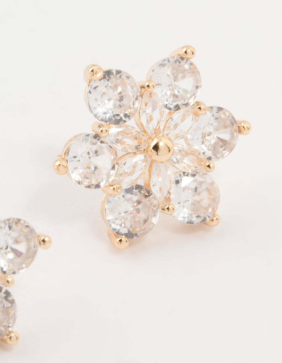 Gold Plated Cubic Zirconia Flower Stud Earrings