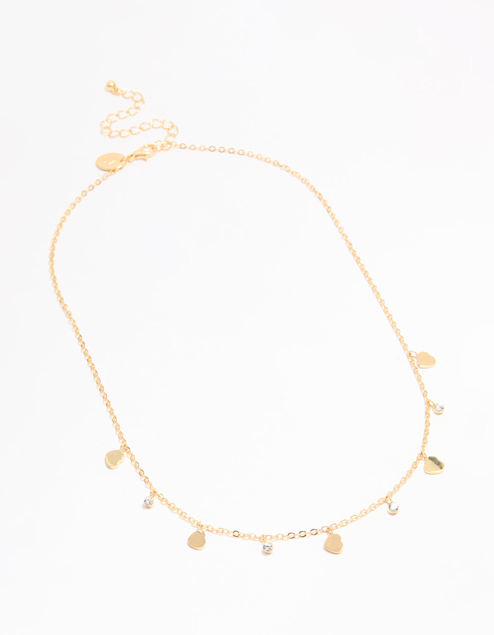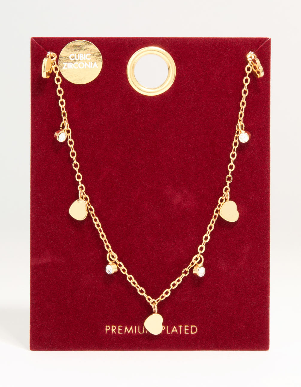 Gold Plated Cubic Zirconia & Heart Charm Pendant Necklace