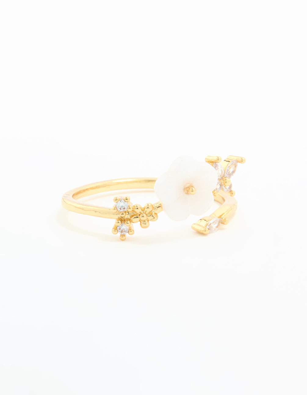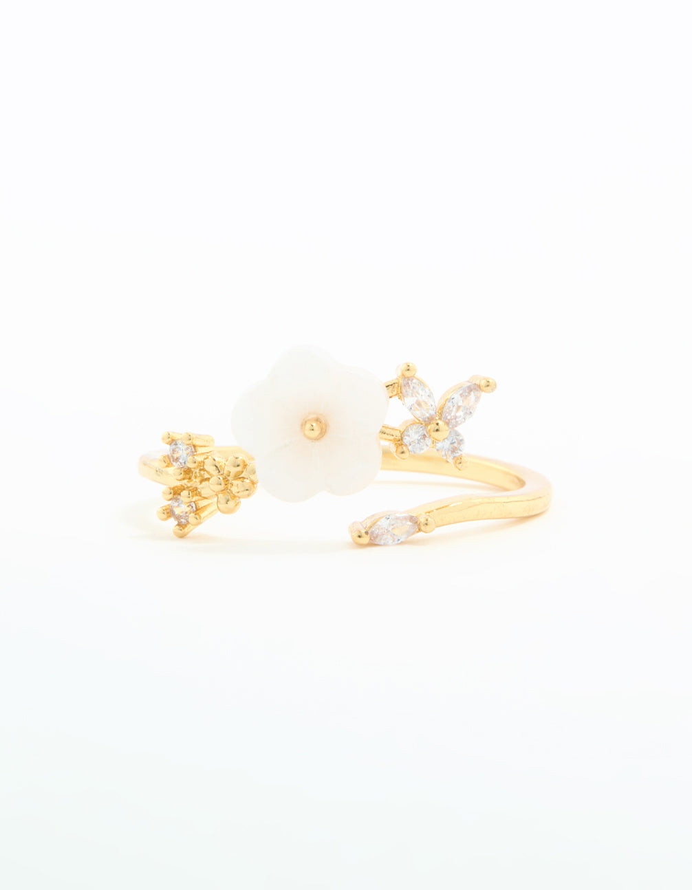 Gold Plated Cubic Zirconia Lovely Flower Wrap Around Ring