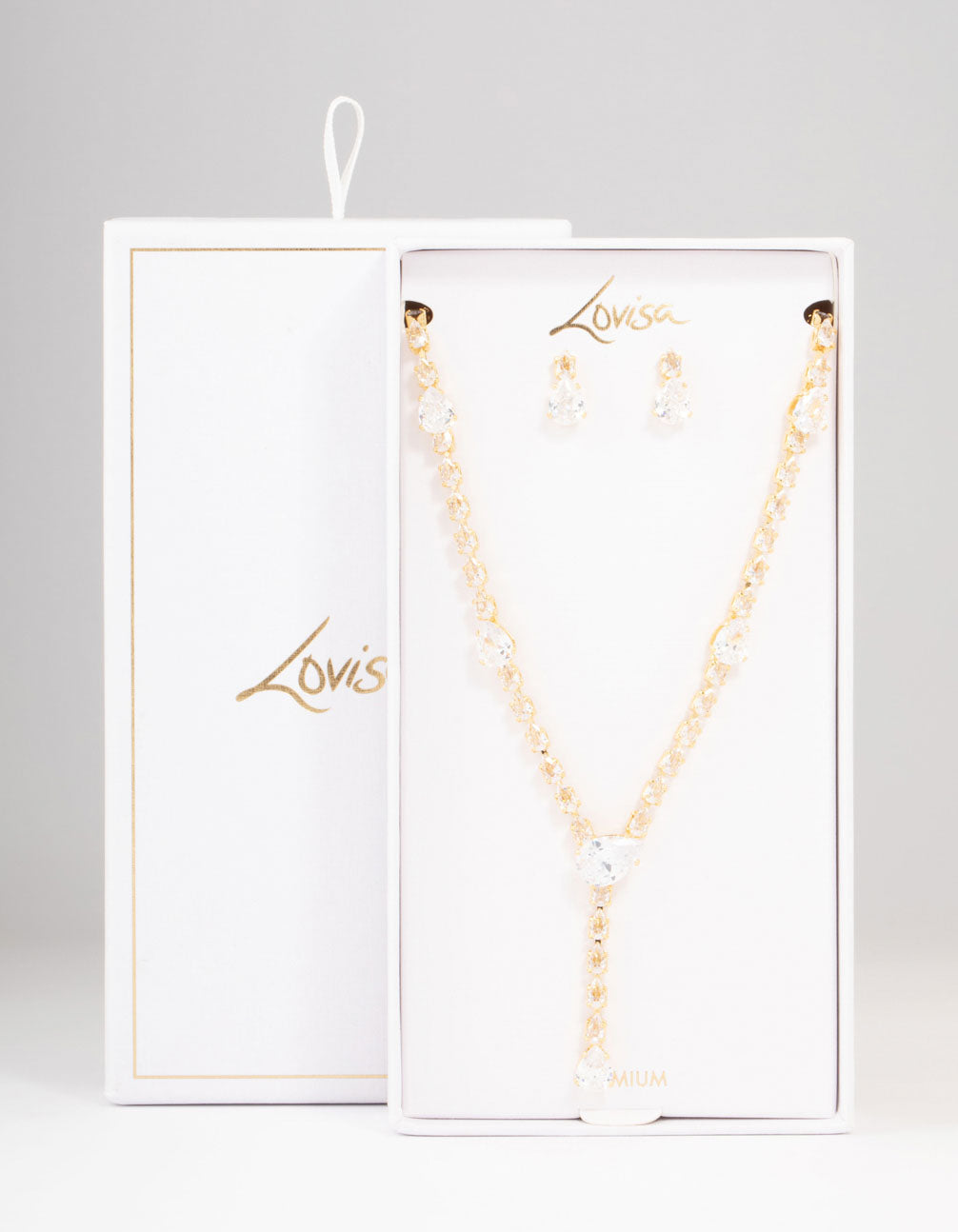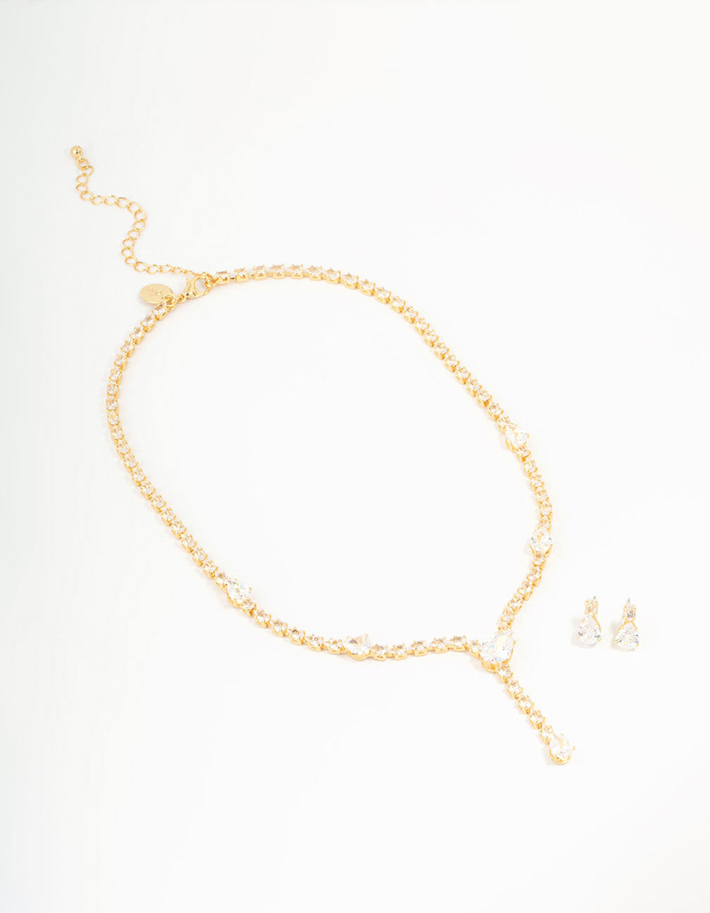 Gold Plated Cubic Zirconia Teardrop Necklace & Earrings Set Gold Plated Cubic Zirconia Teardrop Necklace & Earrings Set Gold Plated Cubic Zirconia Teardrop Necklace & Earrings Set