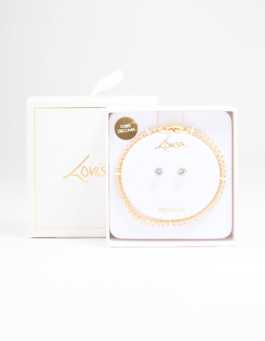 Gold Plated Cubic Zirconia Tennis Bracelet & Earrings Set Gold Plated Cubic Zirconia Tennis Bracelet & Earrings Set Gold Plated Cubic Zirconia Tennis Bracelet & Earrings Set