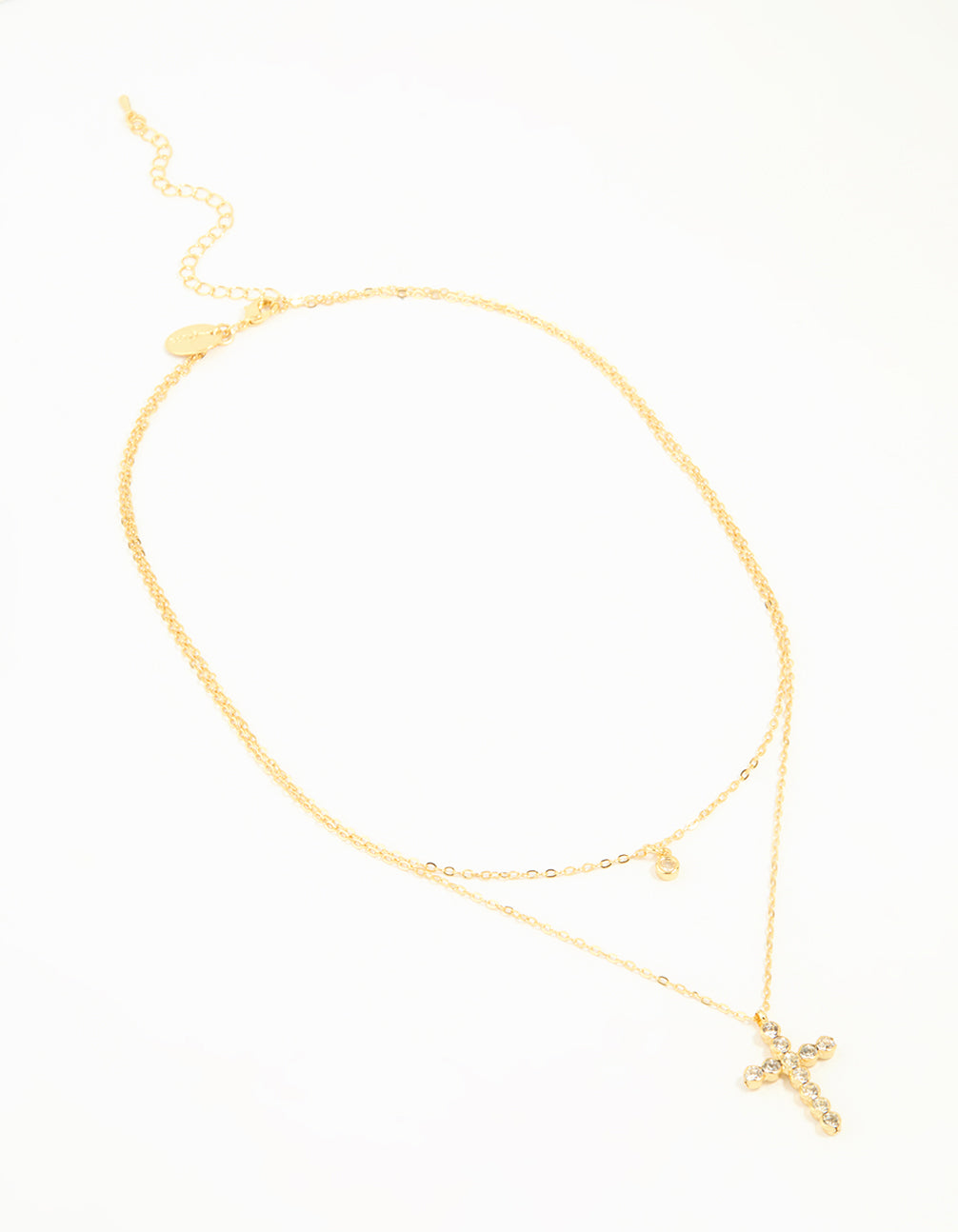 Add a touch of sparkle to any outfit with this Gold Plated Diamante Cross Layered Necklace. This layered necklace features two delicate layers: one showcasing a single diamante pendant and the other with a dazzling diamante-encrusted cross pendant. The gold-plated finish adds a timeless elegance, making it perfect for everything from casual brunches to evening celebrations. Pair this layered necklace with a simple blouse for everyday chic or style it with a flowy dress for an effortlessly glam look. Whether you're accessorising for a special occasion or just want to elevate your everyday style, this versatile pendant necklace is your go-to. Perfect for layering lovers and anyone who adores jewellery with a hint of sparkle!