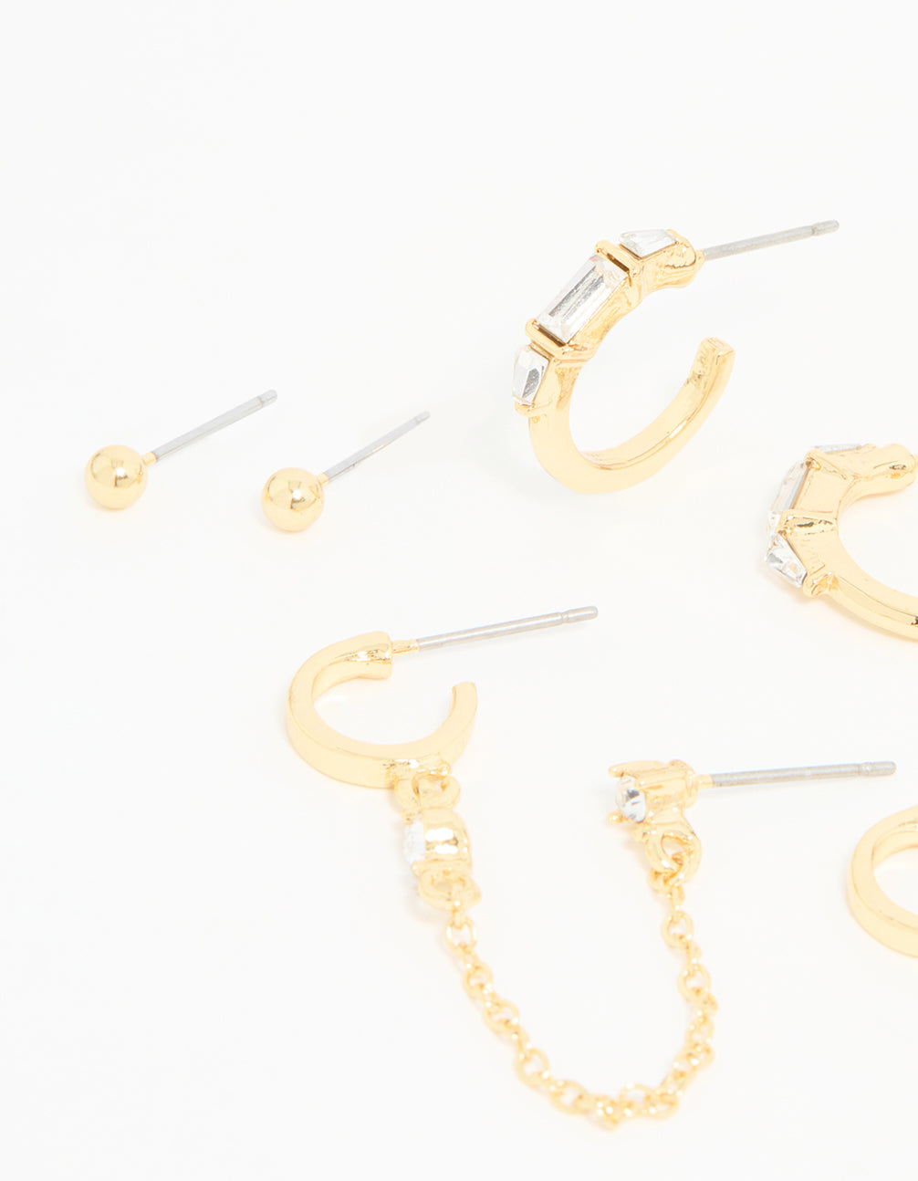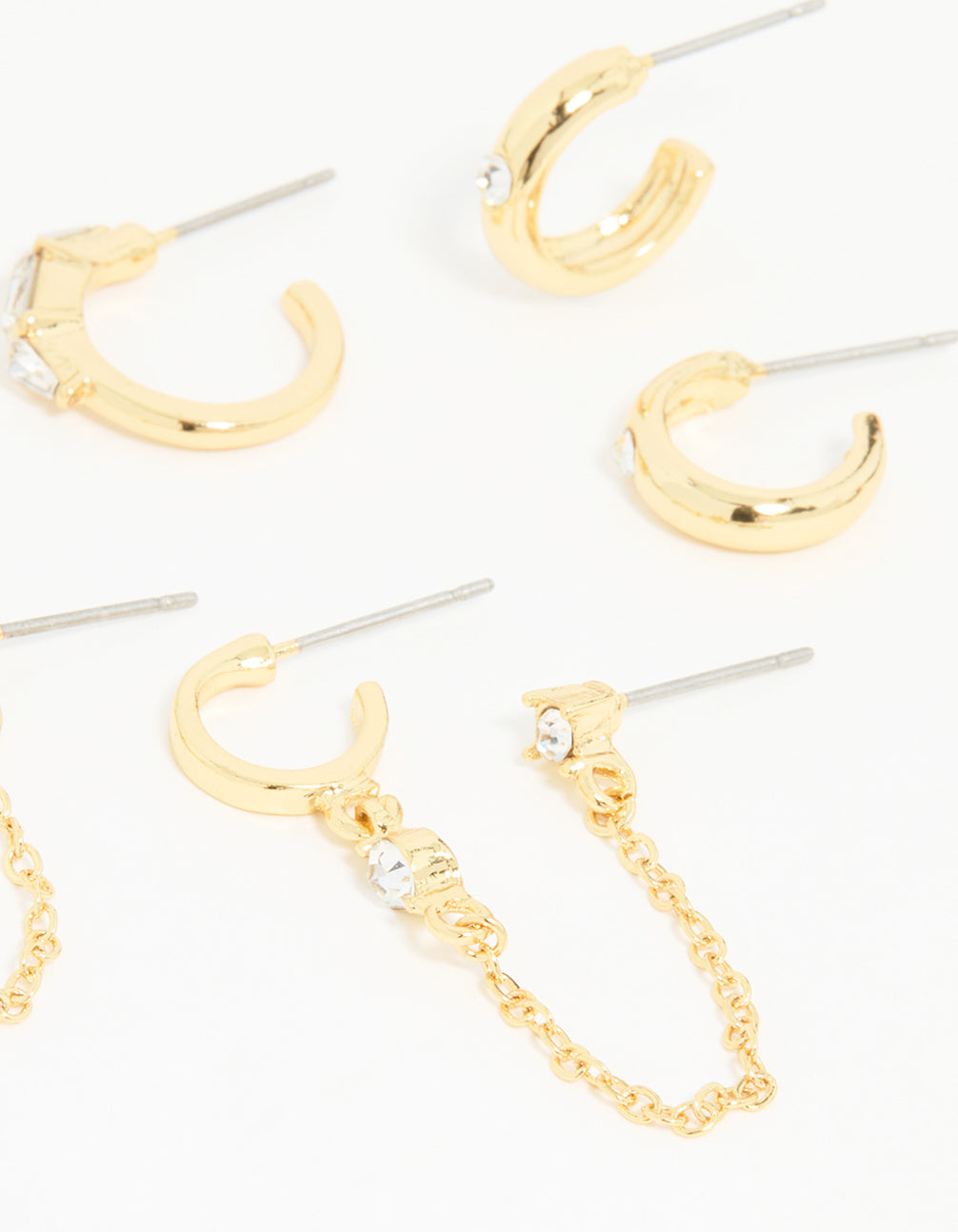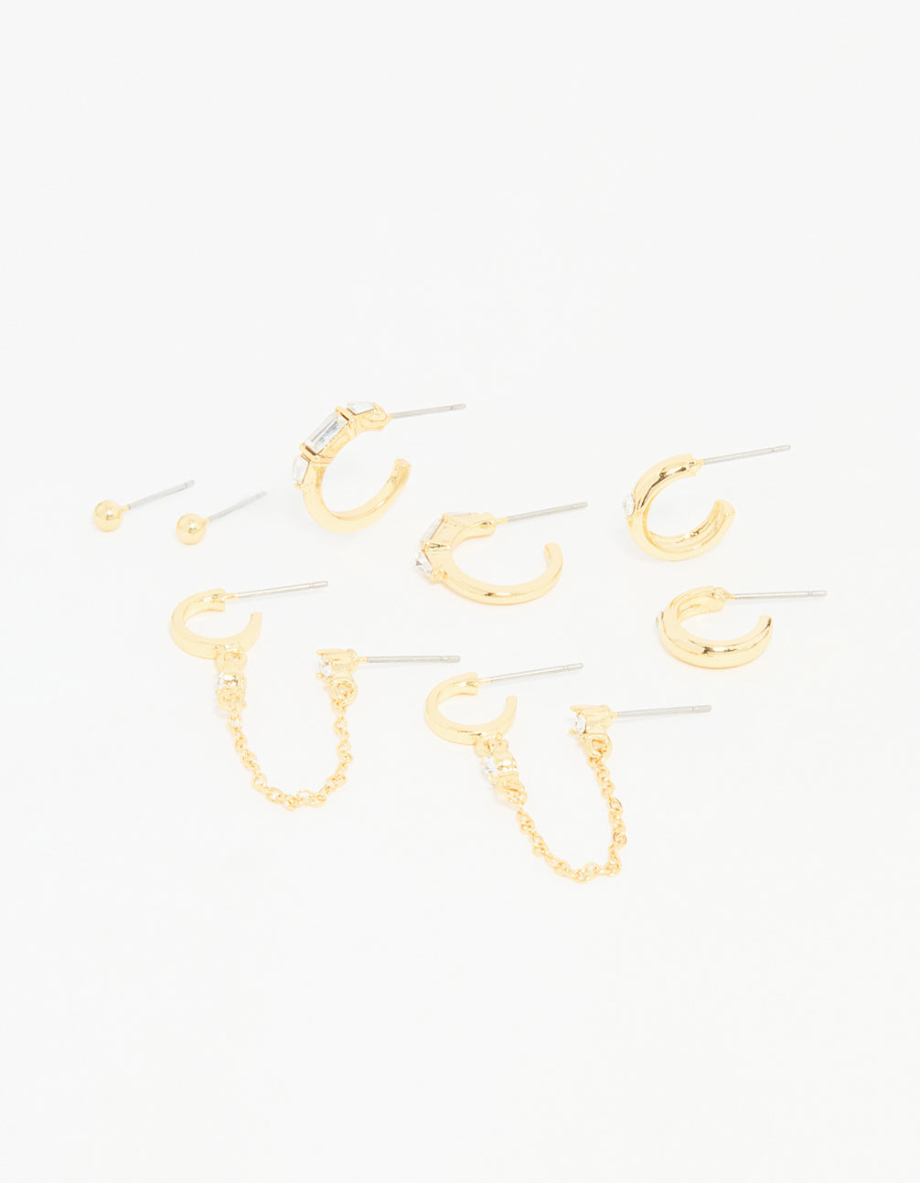 Gold Plated Diamante Hoop & Chain Drop Earrings 5-Pack