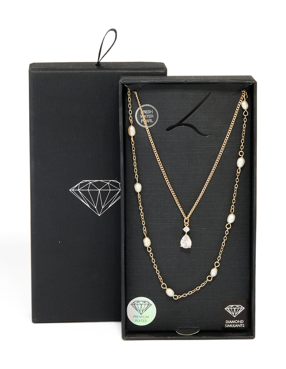 Gold Plated Freshwater Pearl & Diamante Layered Necklace