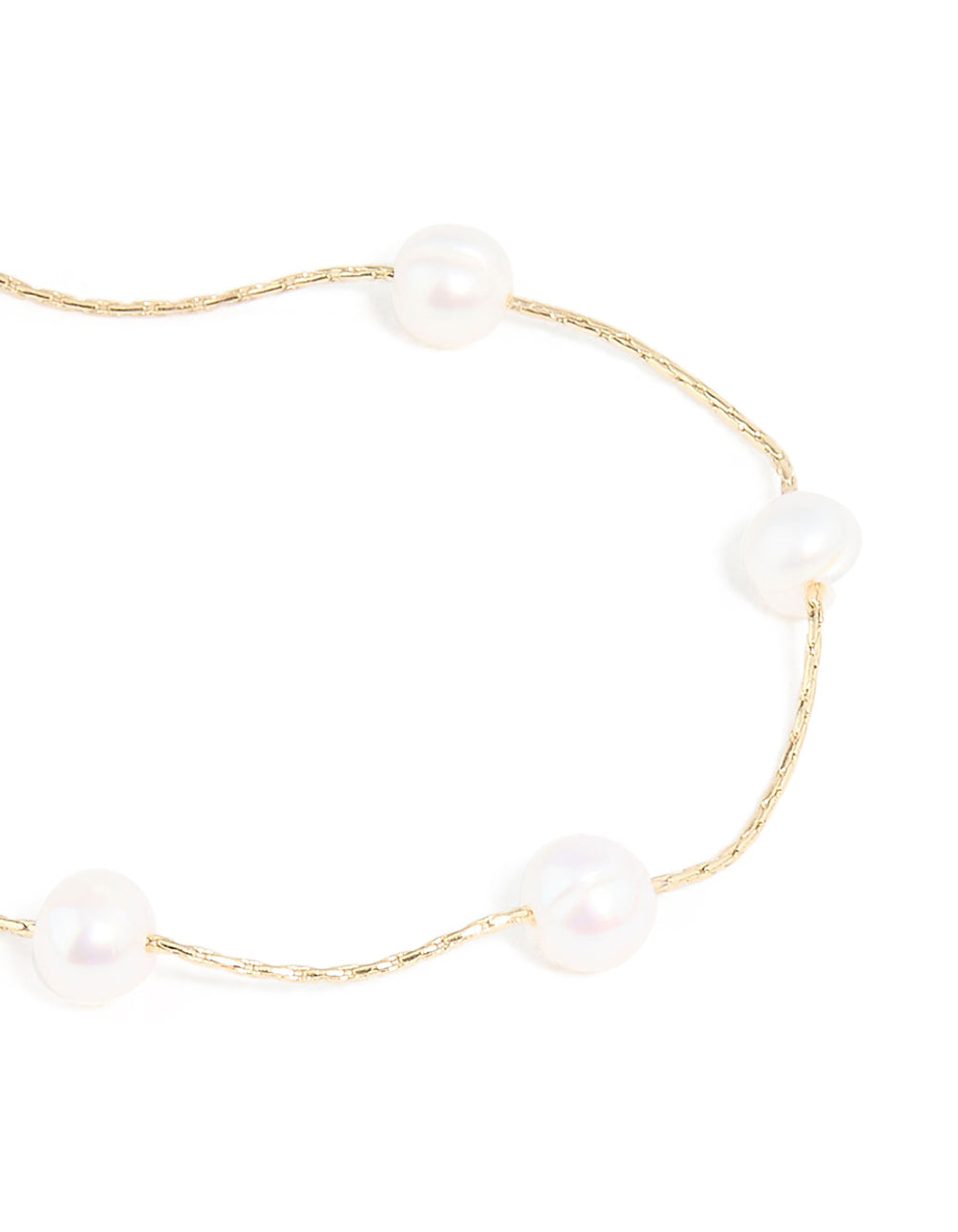 Gold Plated Freshwater Pearl Station Toggle Bracelet