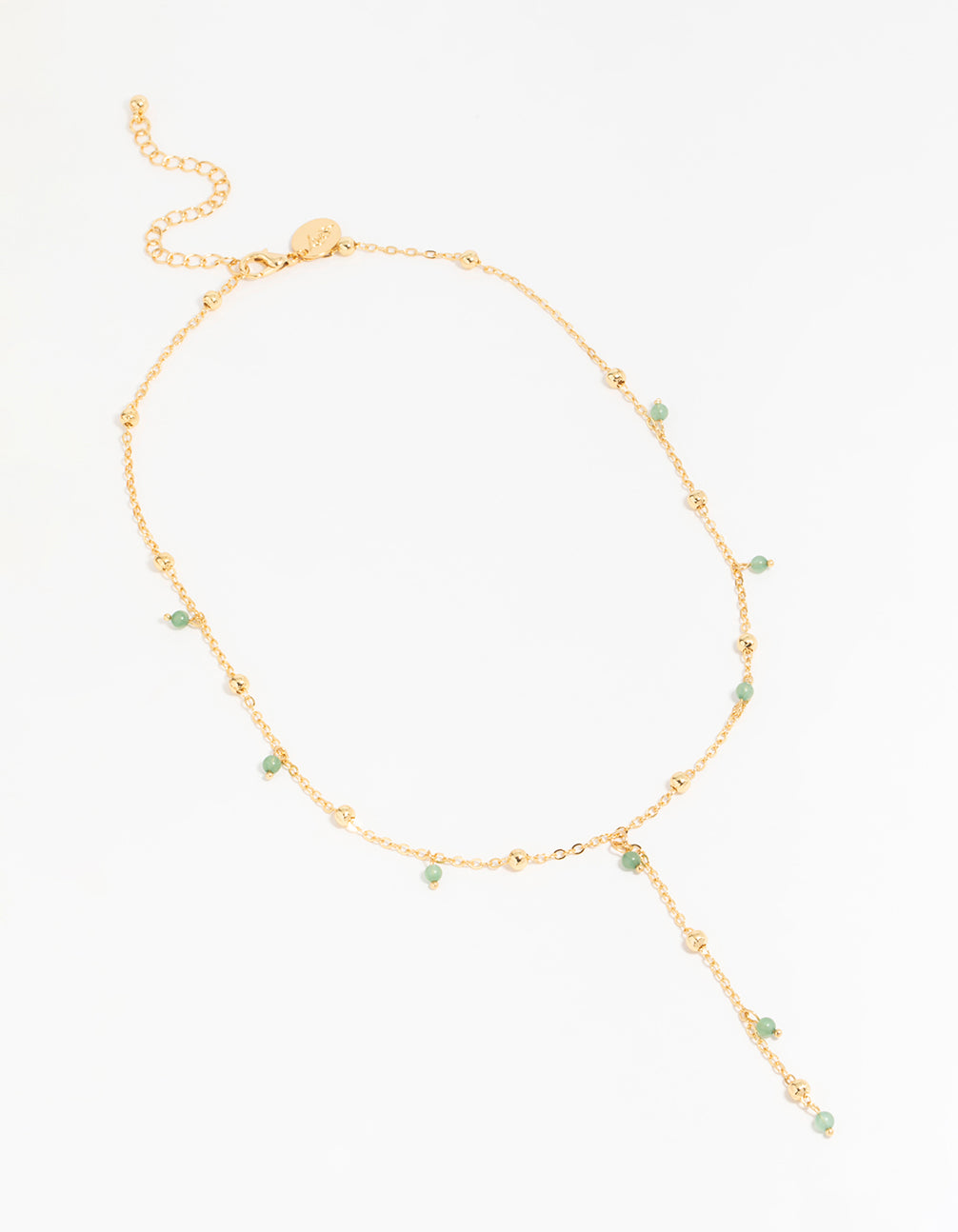 Gold Plated Green Semi Precious Ball Y-Necklace