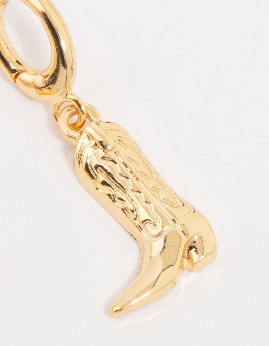 Add a touch of the Wild West to your charm bracelet or necklace with this delightful 3-pack. Featuring a lucky horseshoe, a pink heart, and a gold boot, these gold-plated charms are sure to lasso some compliments!