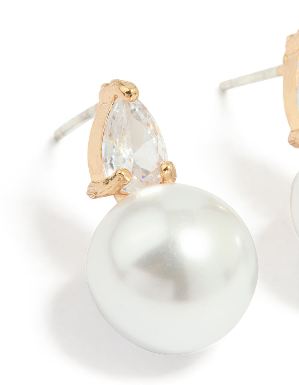 Gold Plated Mini Cubic Zirconia Pearl Drop Earrings Gold Plated Mini Cubic Zirconia Pearl Drop Earrings Gold Plated Mini Cubic Zirconia Pearl Drop Earrings