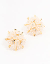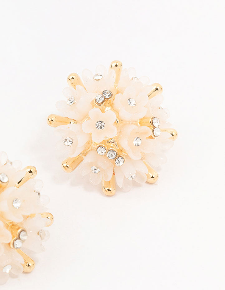 Capture timeless bridal charm with these gold mini flower dome stud earrings. Crafted in a classic floral design, their petite yet luxurious size features high-quality gold plating. Perfect for brides seeking feminine allure and lasting luxury.