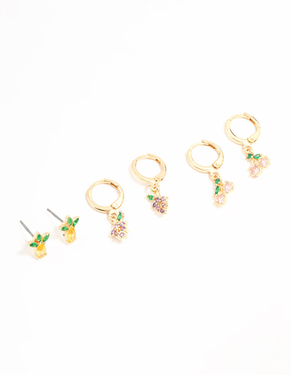 Gold Mixed Fruit Studs & Huggie Earrings 3-Pack
