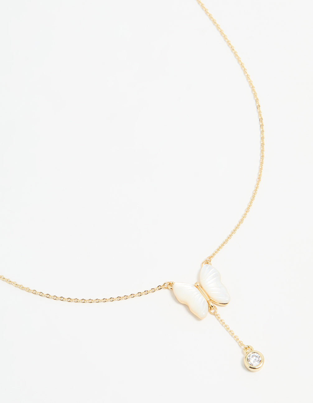 Gold Plated Mother Of Pearl & Cubic Zirconia Butterfly Y-Necklace