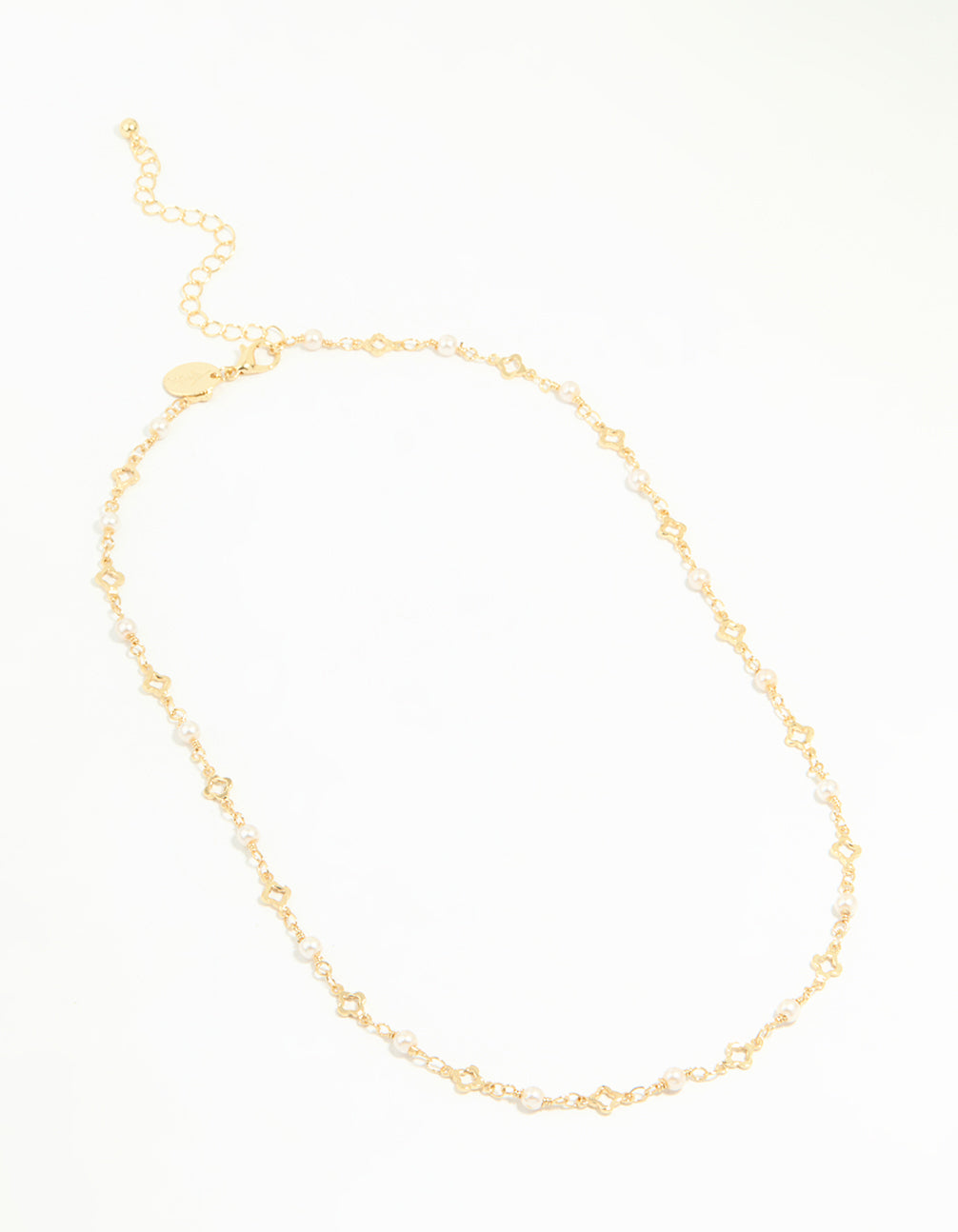 Gold Plated Pearl Flower Outline Necklace Gold Plated Pearl Flower Outline Necklace Gold Plated Pearl Flower Outline Necklace