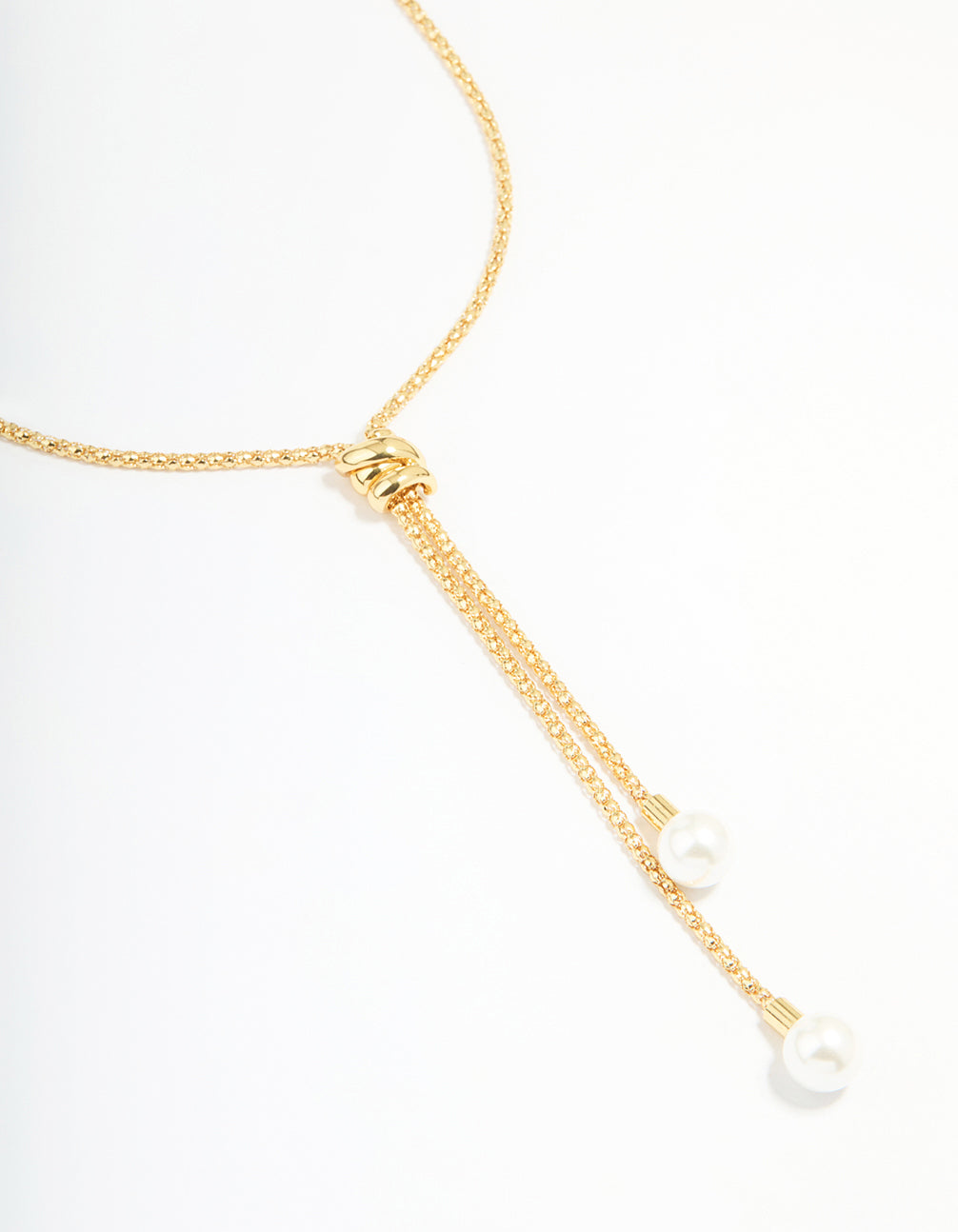 Gold Plated Pearl Lariat Adjustable Necklace