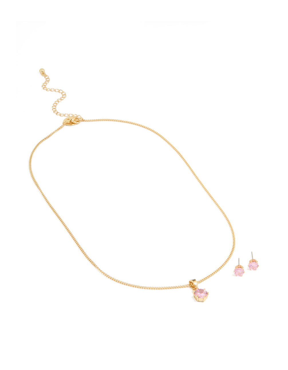 Gold Plated Pink Cubic Zirconia Pendant Necklace & Earrings Set Gold Plated Pink Cubic Zirconia Pendant Necklace & Earrings Set Gold Plated Pink Cubic Zirconia Pendant Necklace & Earrings Set