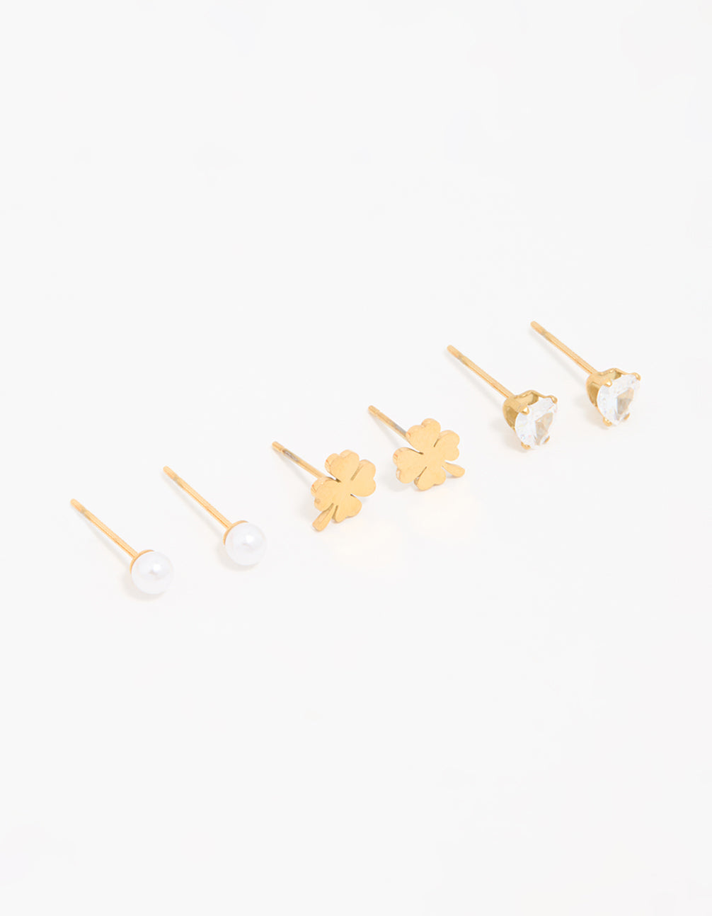 Waterproof Gold Plated Stainless Steel Clean Clover Stud Earrings 3-Pack