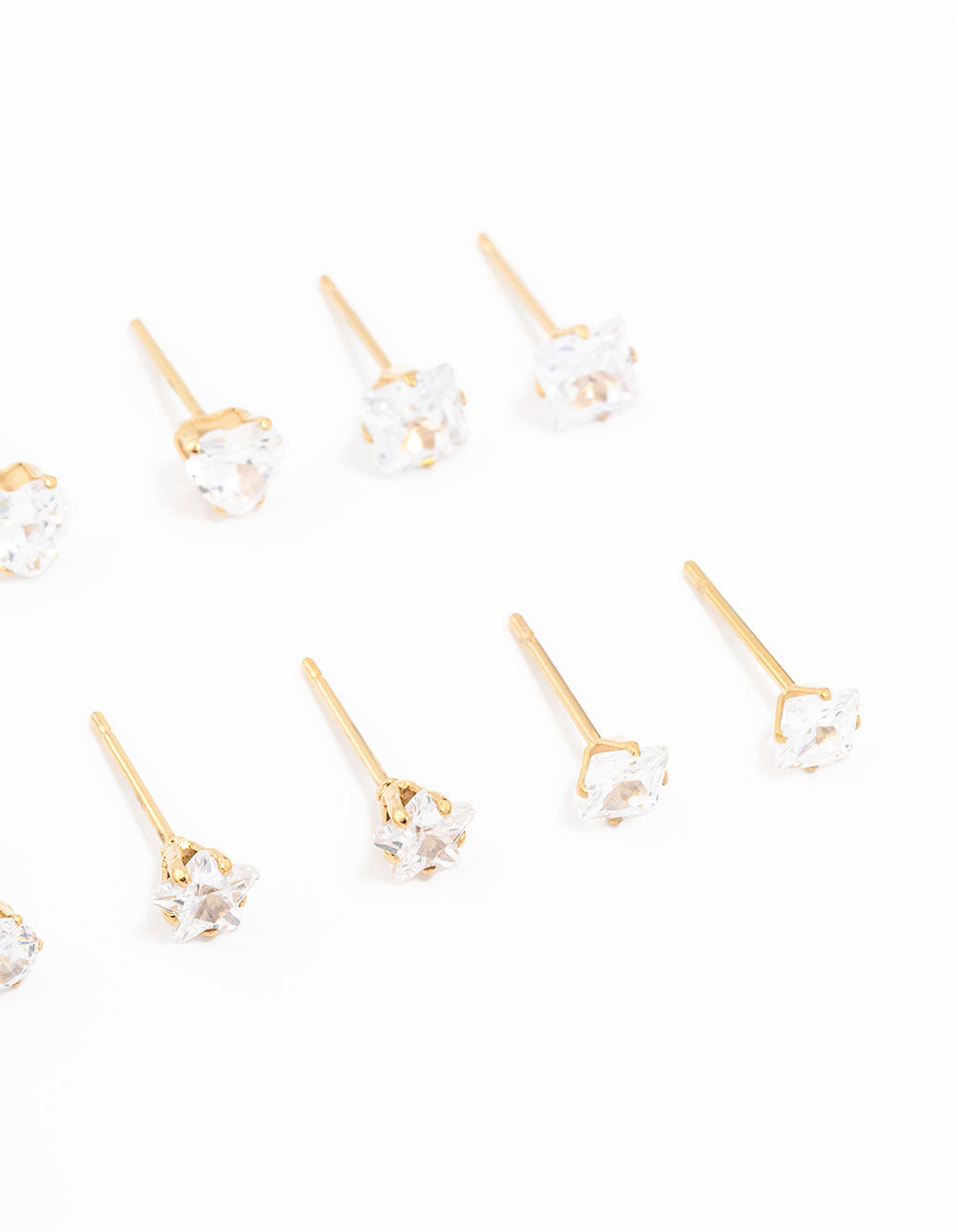 Waterproof Gold Plated Stainless Steel Cubic Zirconia Stud Earrings 6-Pack Waterproof Gold Plated Stainless Steel Cubic Zirconia Stud Earrings 6-Pack Waterproof Gold Plated Stainless Steel Cubic Zirconia Stud Earrings 6-Pack