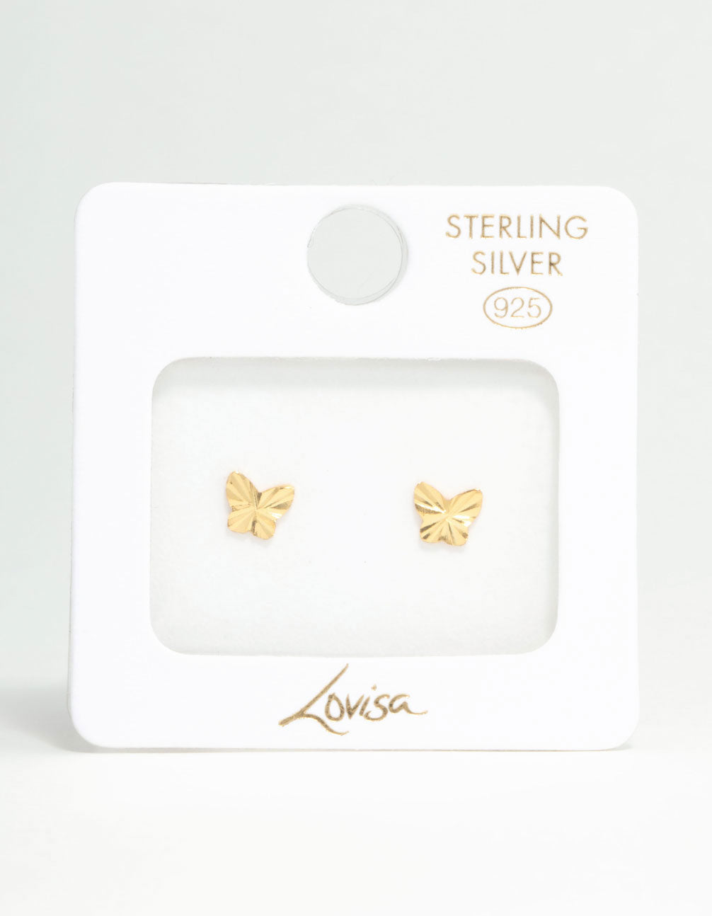 Gold Plated Sterling Silver Butterfly Stud Earrings