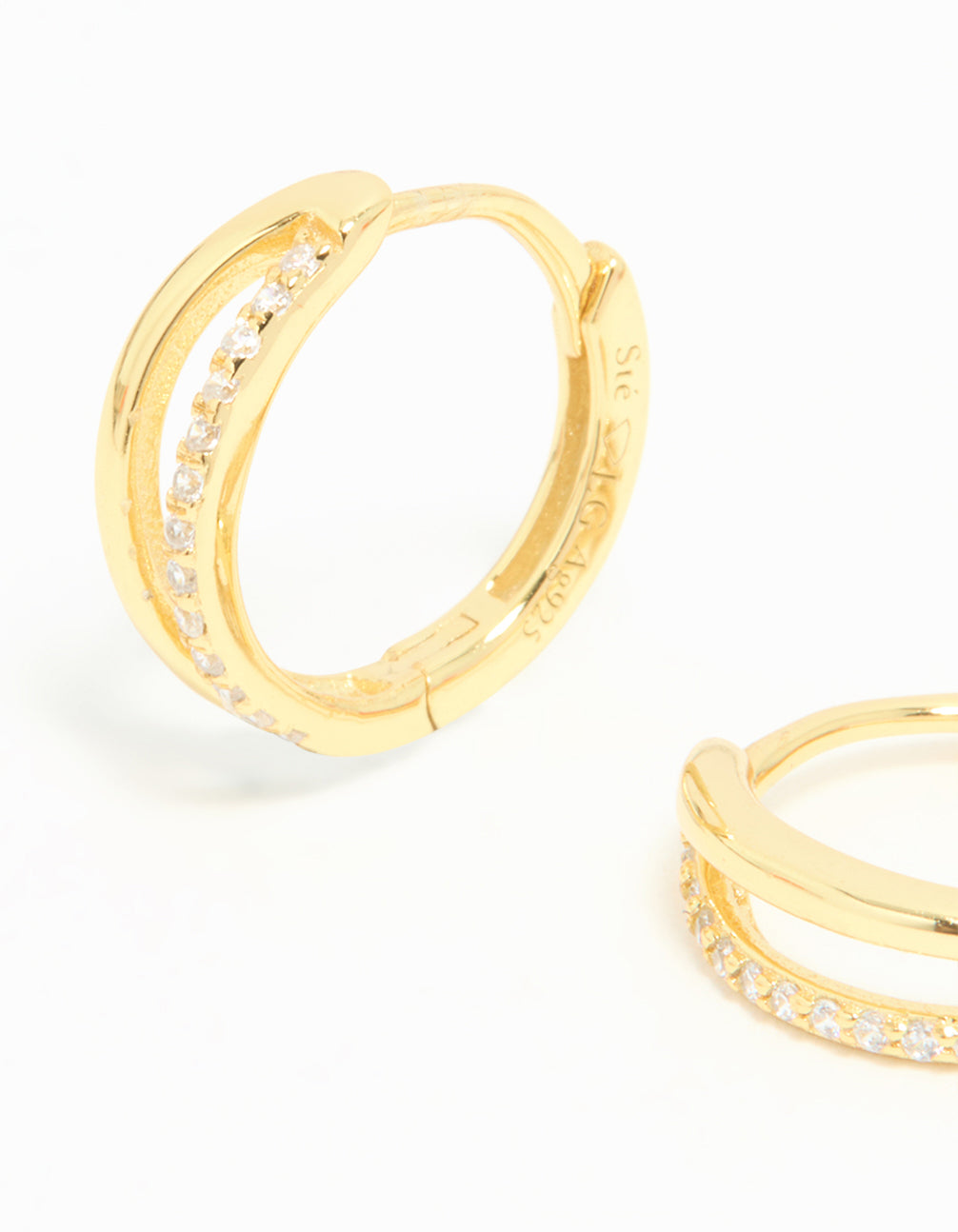 Gold Plated Sterling Silver Cubic Zirconia Double Hoop Earrings