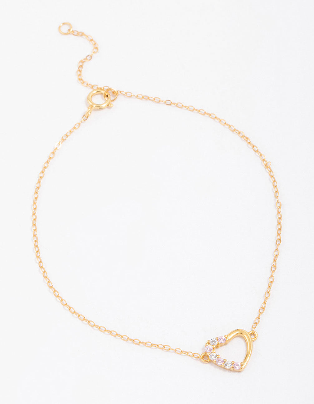 Gold Plated Sterling Silver Cubic Zirconia Heart Bracelet