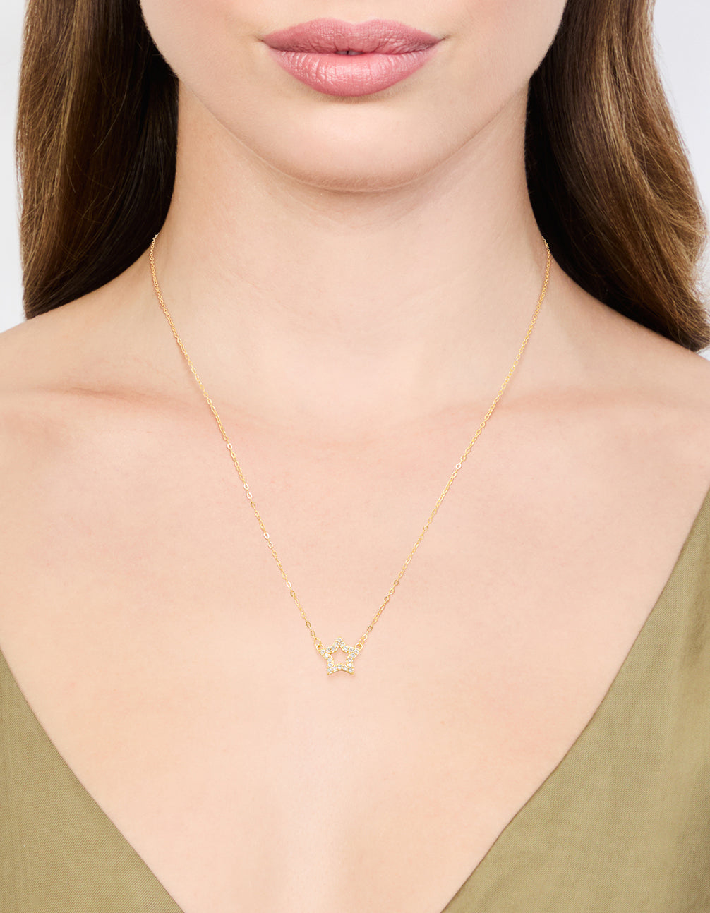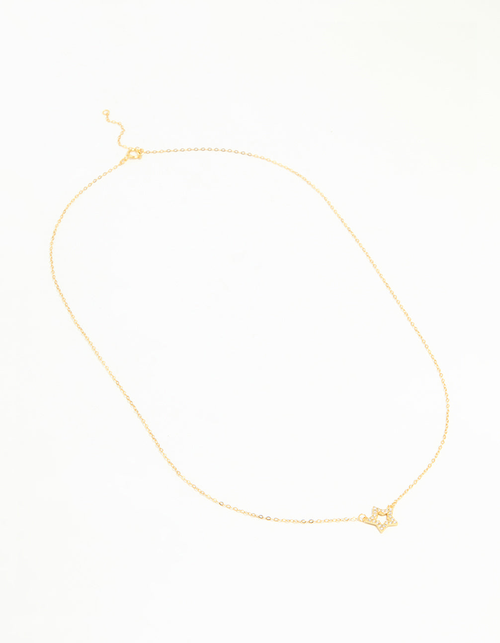 Gold Plated Sterling Silver Cubic Zirconia Pavé Star Necklace