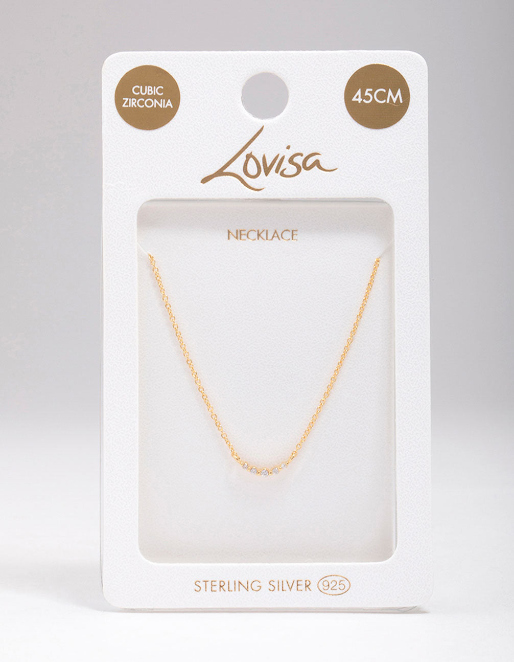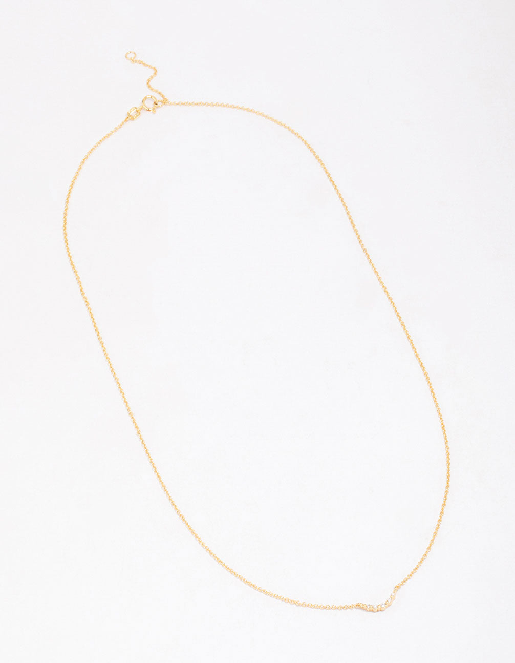 Gold Plated Sterling Silver Curved Cubic Zirconia Pendant Necklace