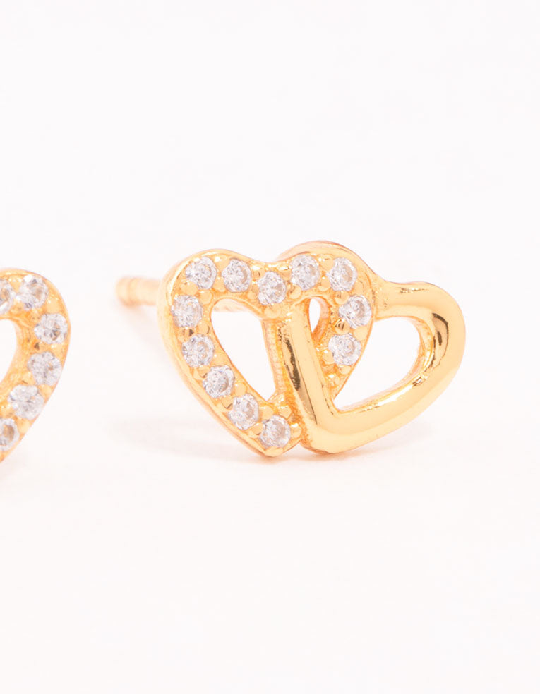 Embrace double the love with these charming stud earrings. These stud earrings feature a durable gold plated sterling silver base and are crafted in a lovely, intertwined heart shape for that romantic touch and littered with cubic zirconia crystals for a dazzling look.