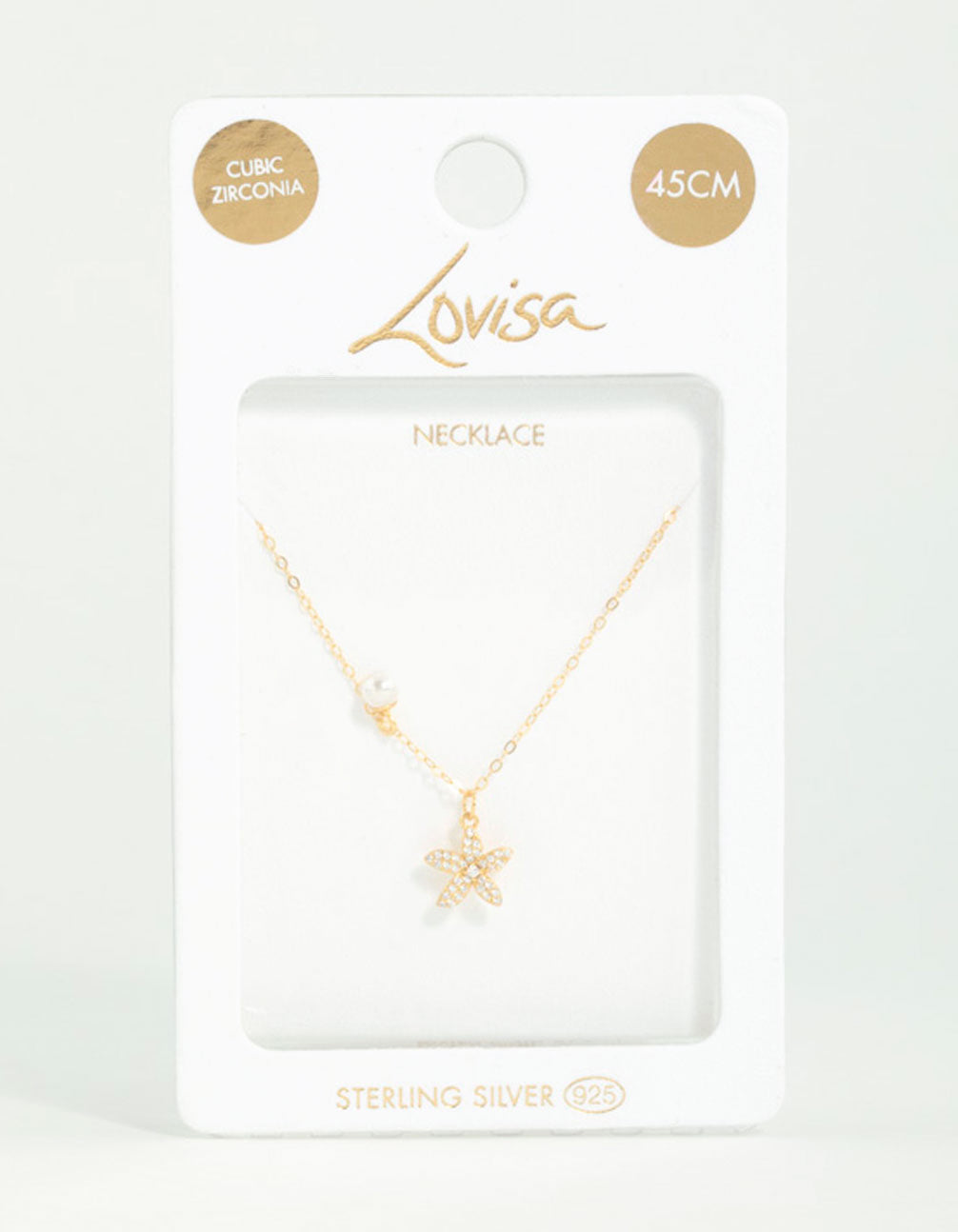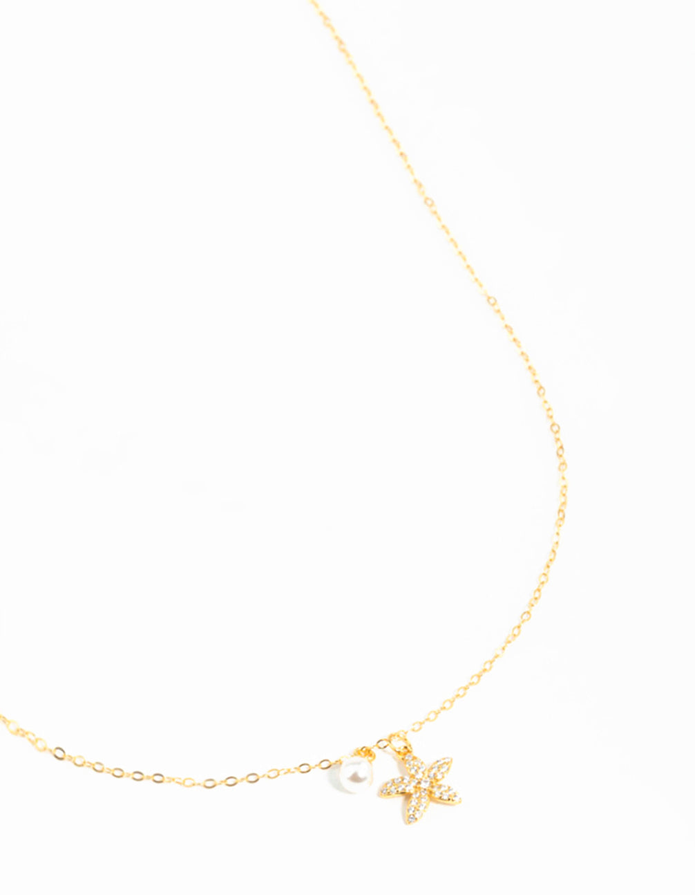 Gold Plated Sterling Silver Starfish Freshwater Pearl Chain Necklace