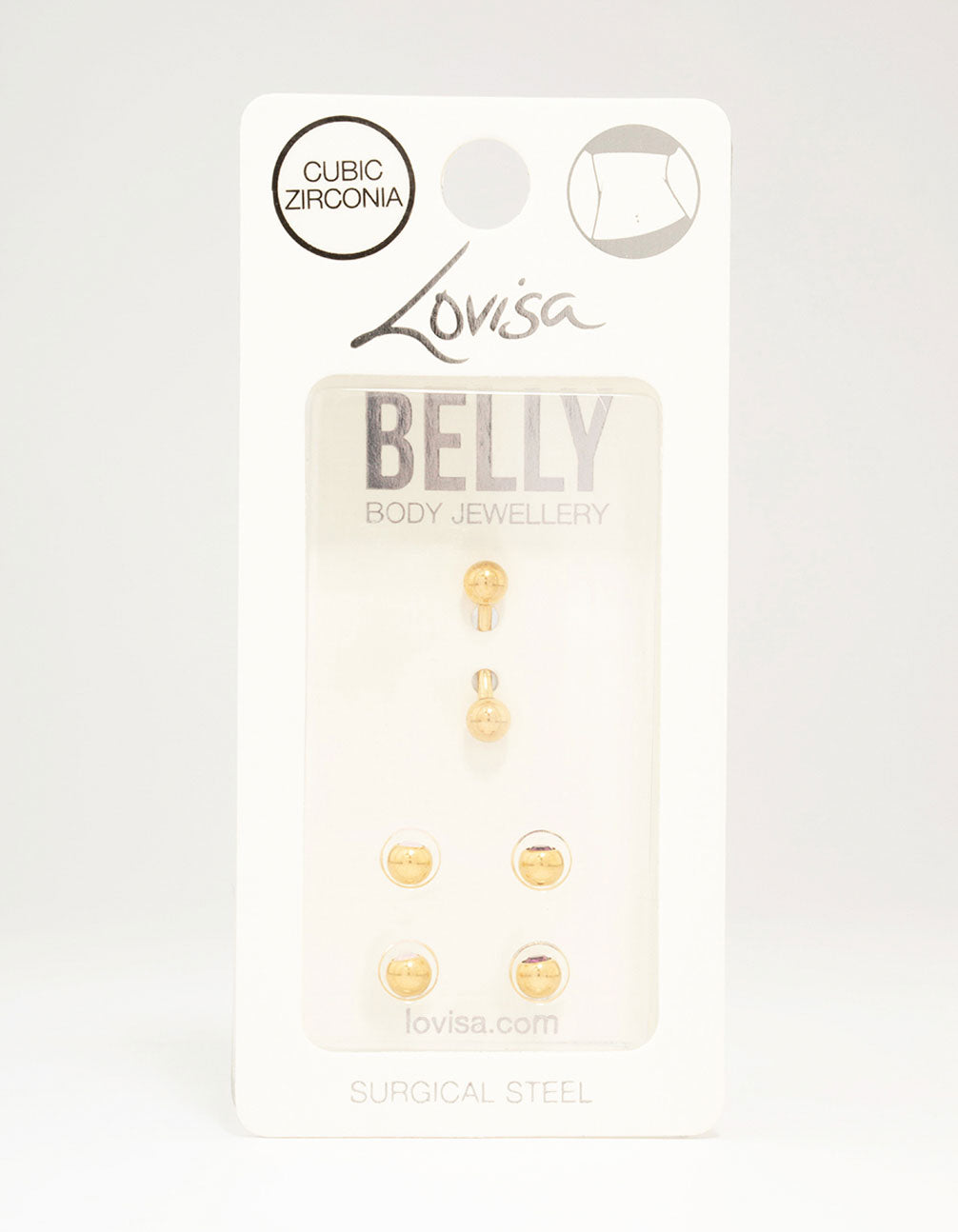 Customise your look with our selection of premium, genuine surgical steel piercing jewellery. This belly piercing pack contains a single, gold plated piercing and comes with four extra attachments, perfect for mixing up your style.