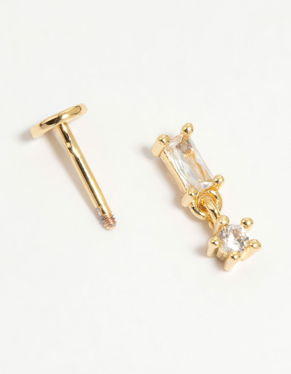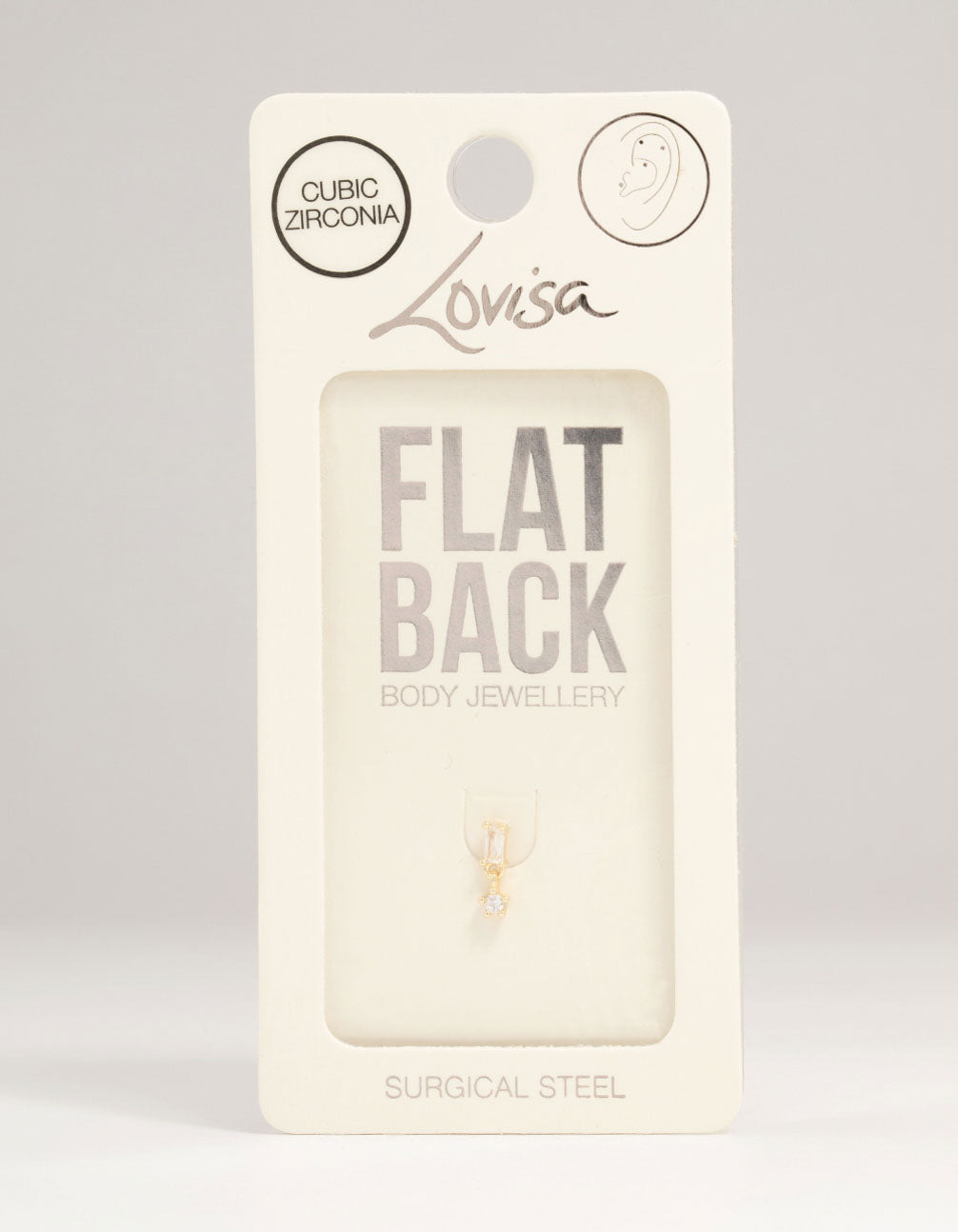 Gold Plated Surgical Steel Cubic Zirconia Baguette Drop Flat Back Stud