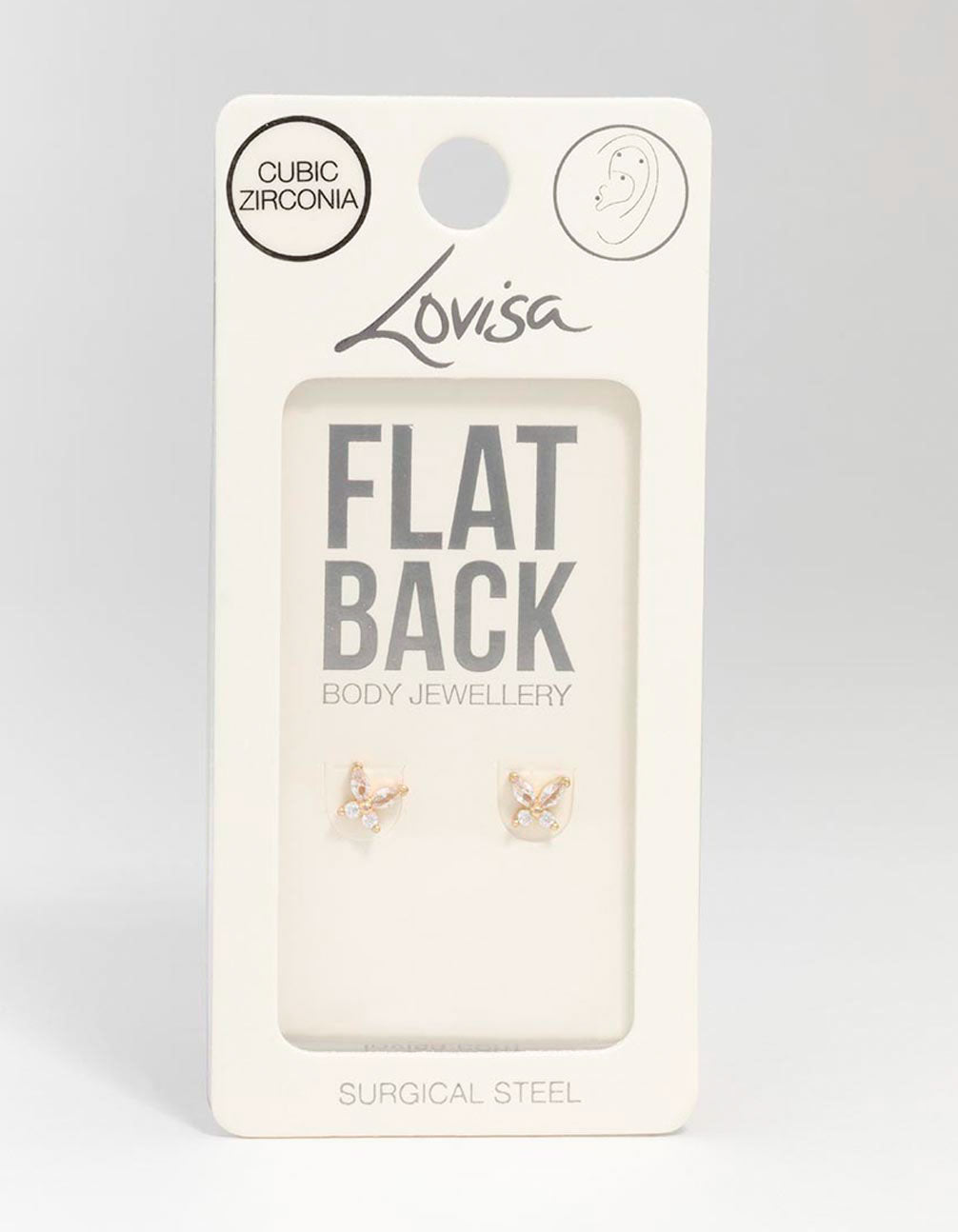 Gold Plated Surgical Steel Cubic Zirconia Butterfly Flat Back 2-Pack Gold Plated Surgical Steel Cubic Zirconia Butterfly Flat Back 2-Pack Gold Plated Surgical Steel Cubic Zirconia Butterfly Flat Back 2-Pack