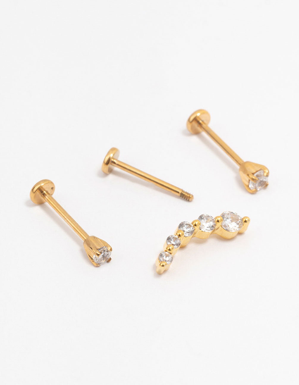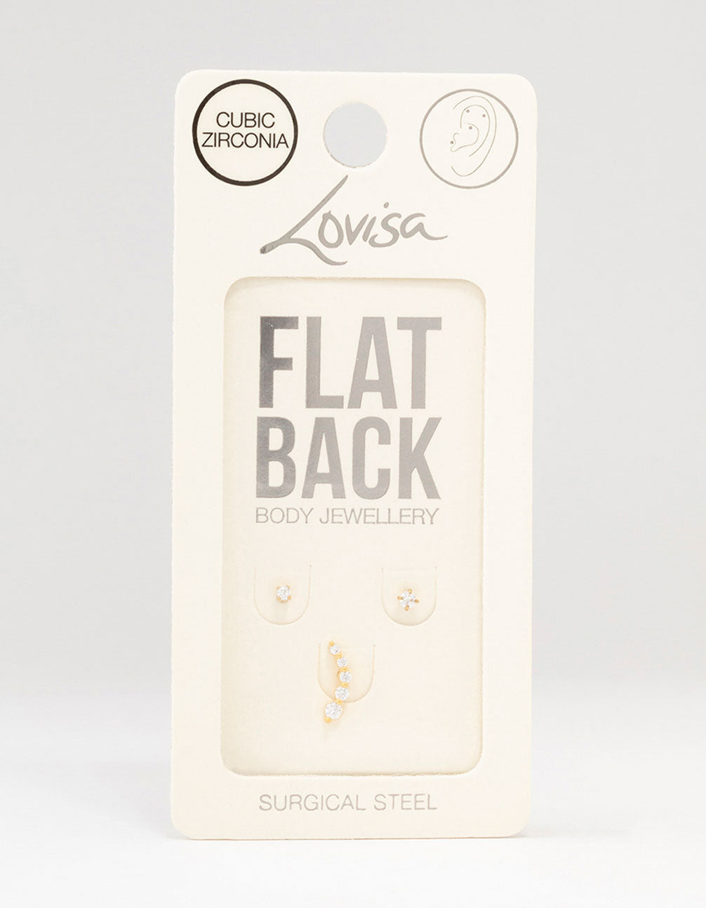 Gold Plated Surgical Steel Cubic Zirconia Crawler Flat Backs 3-Pack