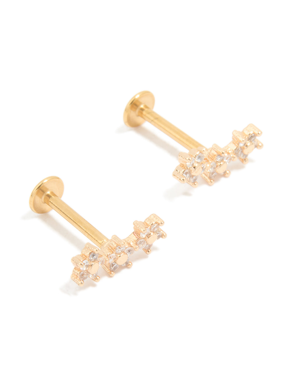 Gold Plated Surgical Steel Cubic Zirconia Flower Trio Flat Back Earrings