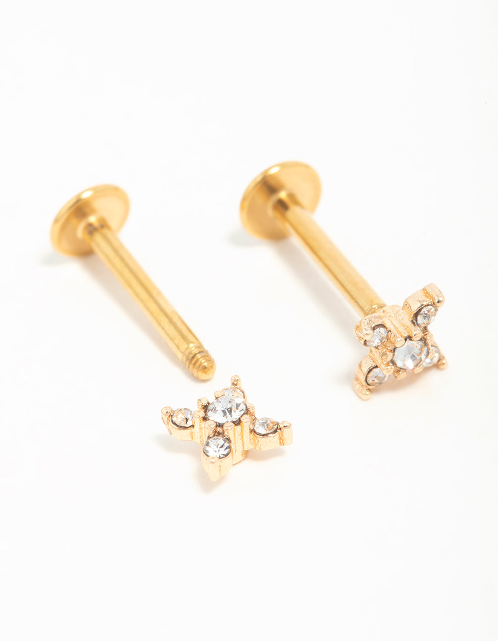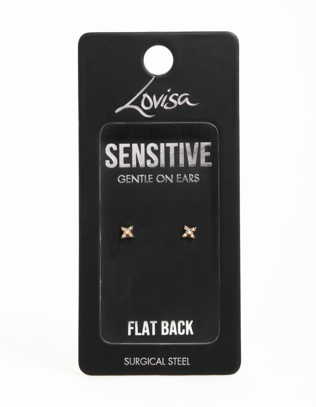 Gold Plated Surgical Steel Diamante Clover Flat Back Earrings