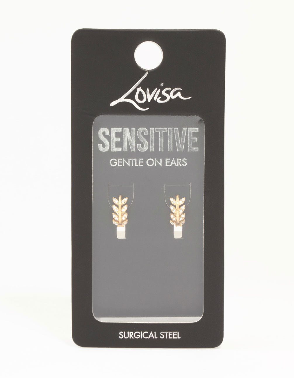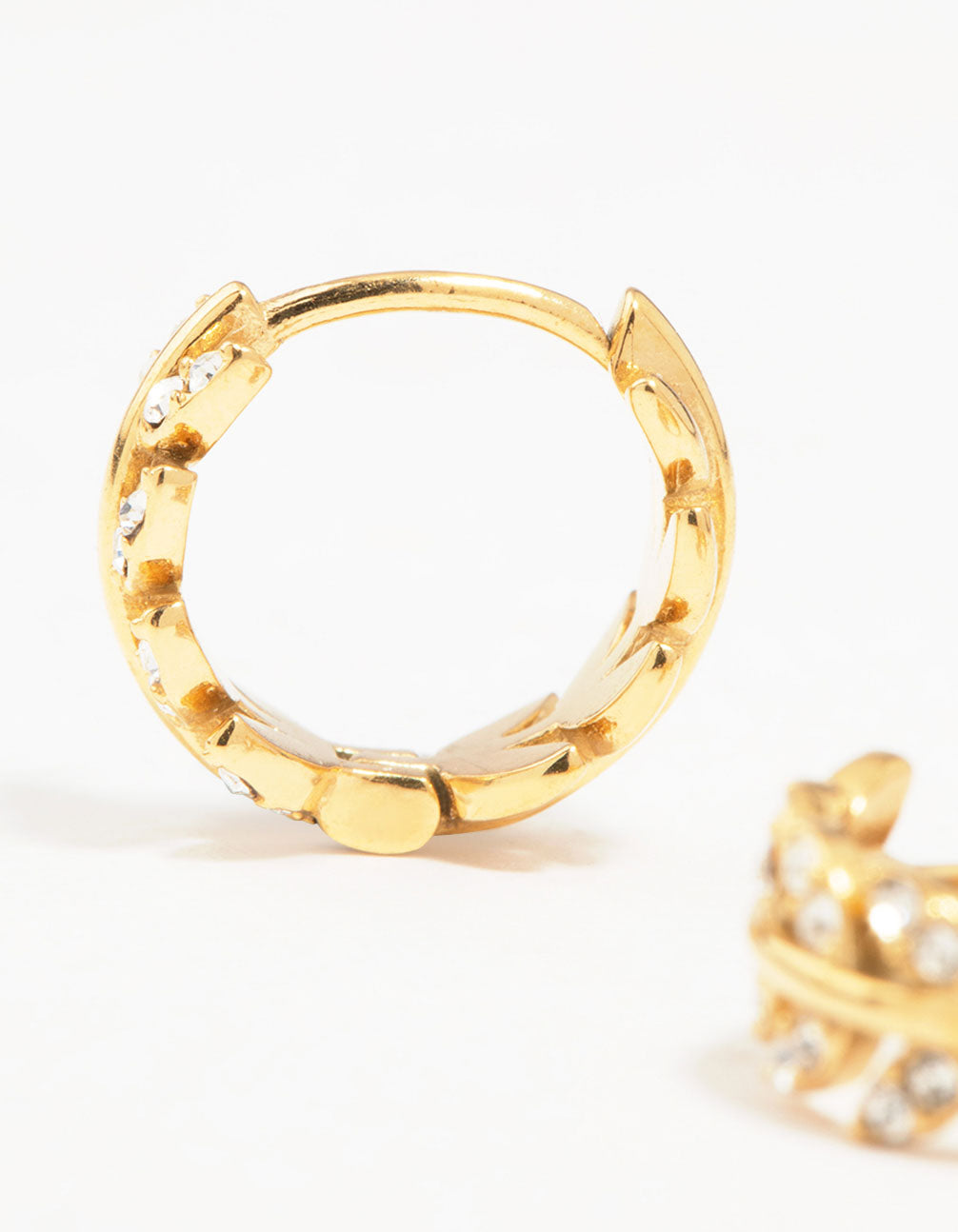 Gold Plated Surgical Steel Diamante Leaf Huggie Earrings