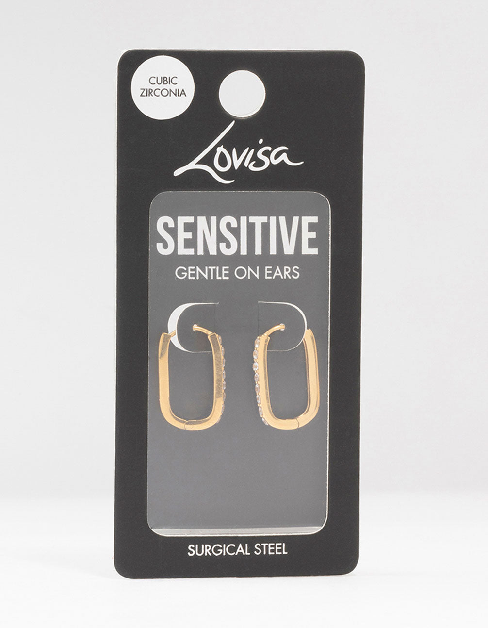 Elevate your favorite looks with these hoops. Crafted from skin-friendly surgical steel plated in real gold, they feature dazzling diamante crystals for added glam. Their fashion-forward oval shape adds a unique twist to both everyday and event wear.