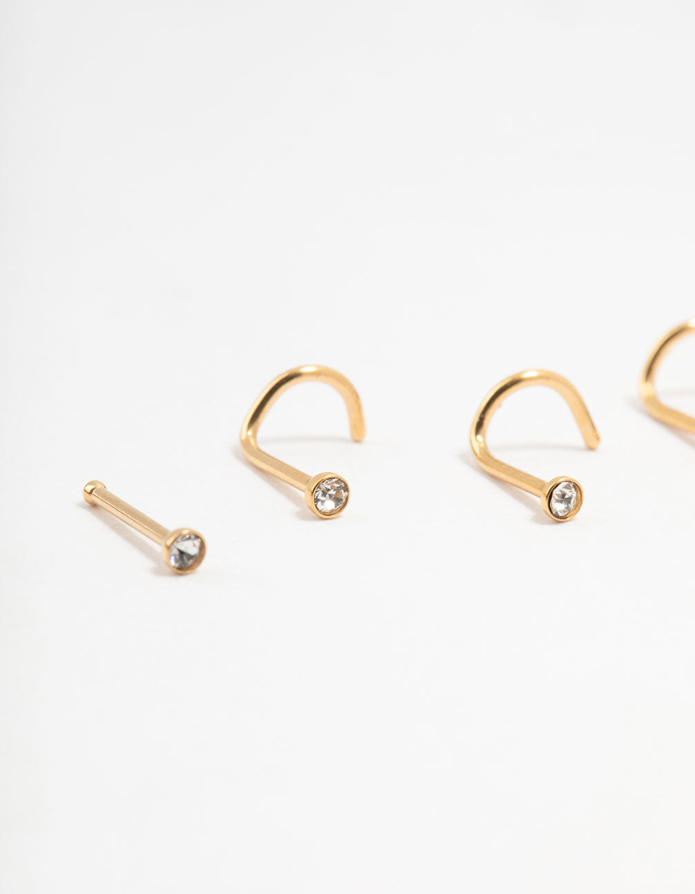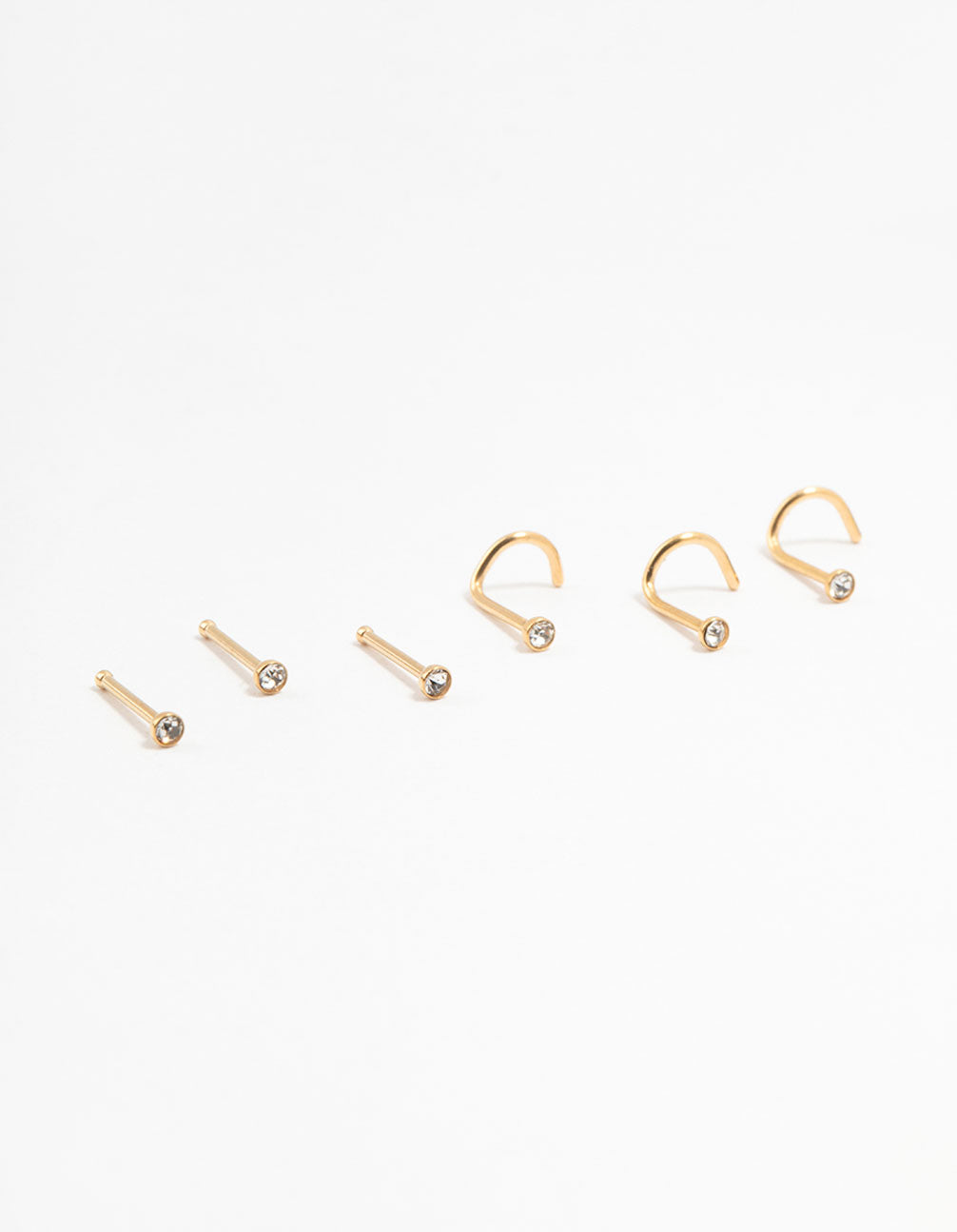 Gold Plated Surgical Steel Mixed Diamante Post Nose Studs 6-Pack