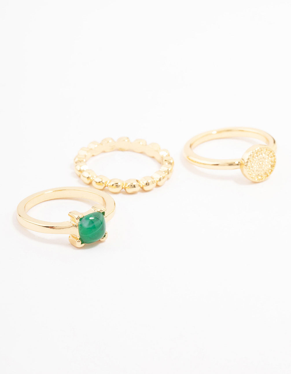 For a signature addition to your stack, style these gold plated stacking rings. This ring pack includes three individual rings, each designed with unique textures and motifs for a classic finish.