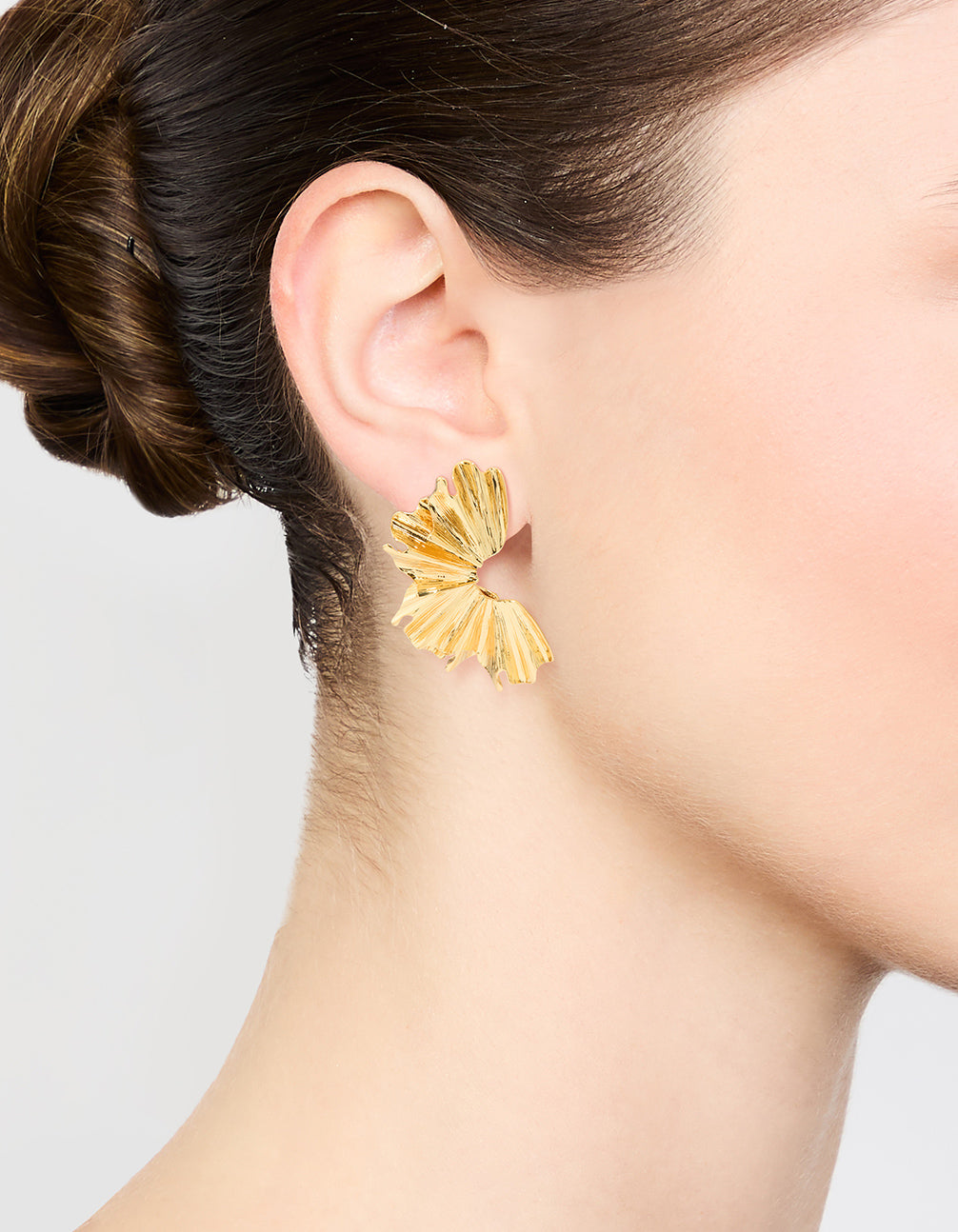 Gold Plated Textured Fan Stud Earrings