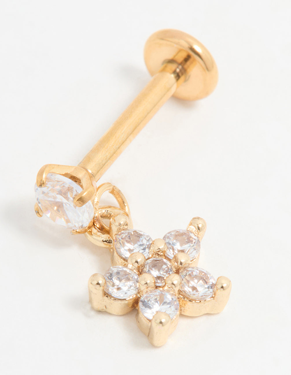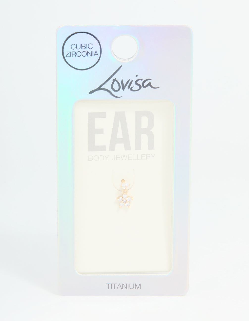 Add sparkle with this Gold-Plated Titanium Cubic Zirconia Petal Flower Flat-Back Stud. This flat-back earring is perfect for sensitive skin and all-day comfort. Its cubic zirconia petal flower design adds an elegant vibe to any look.