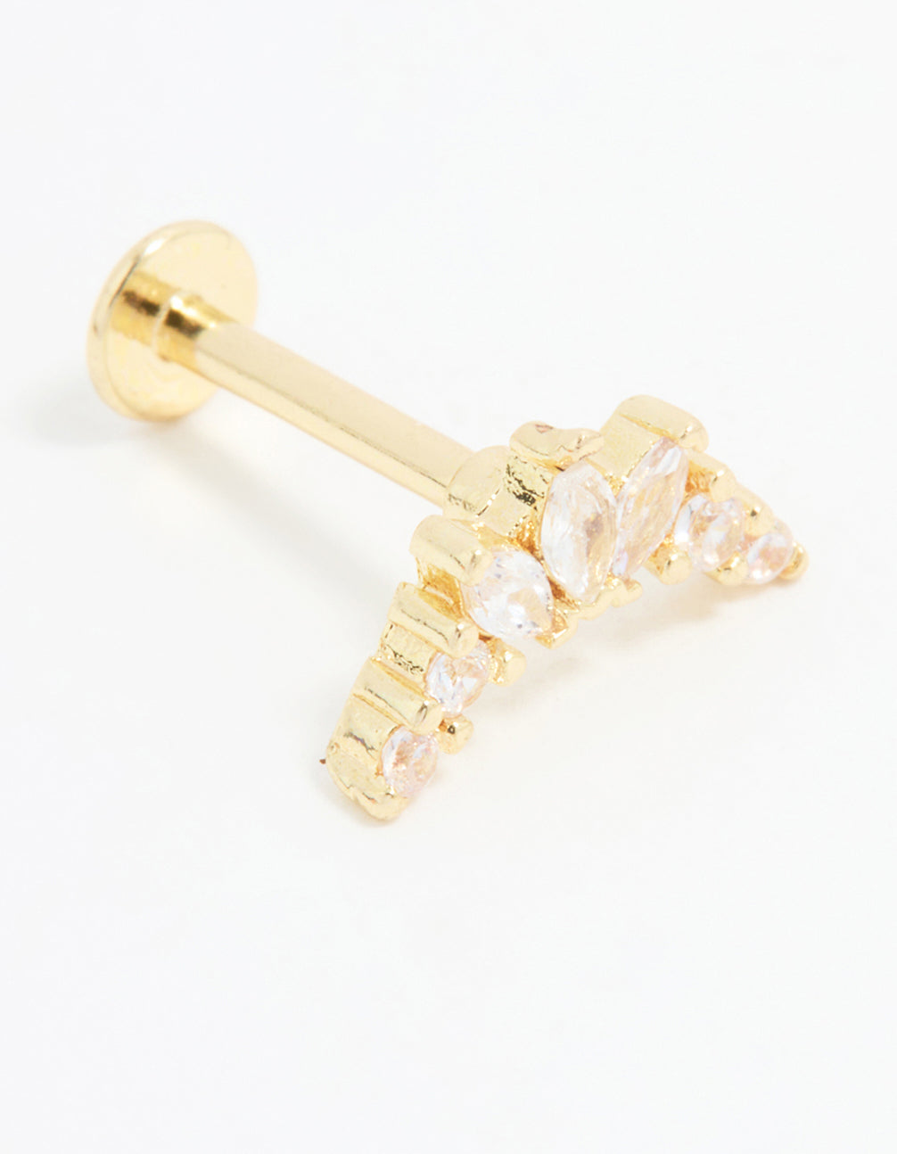 Add some sparkle with this Single Gold Plated Titanium Cubic Zirconia Triangular Marquise Flat Back Stud. Crafted from gold plated titanium and featuring a cubic zirconia modern triangular design.