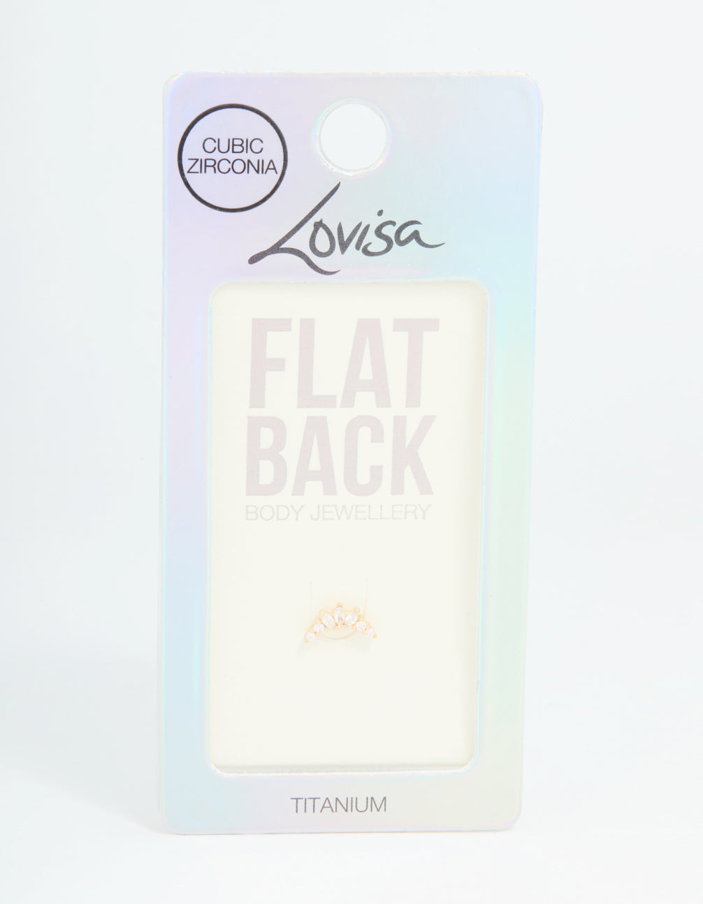 Gold Plated Titanium Cubic Zirconia Triangular Marquise Flat Back Stud