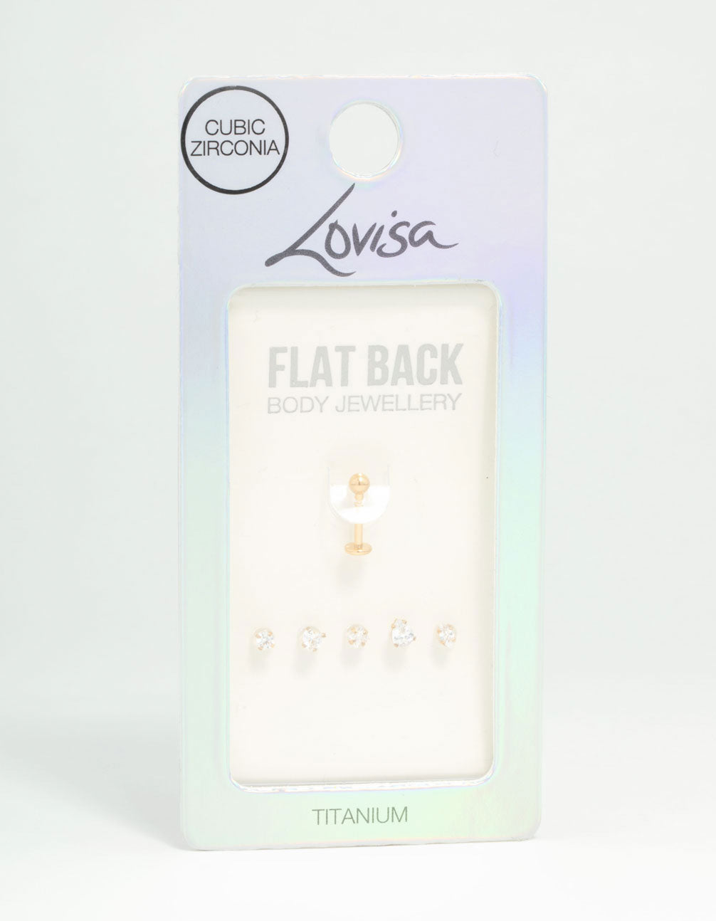 Gold Plated Titanium Mixed Cubic Zirconia Flat Backs 6-Pack