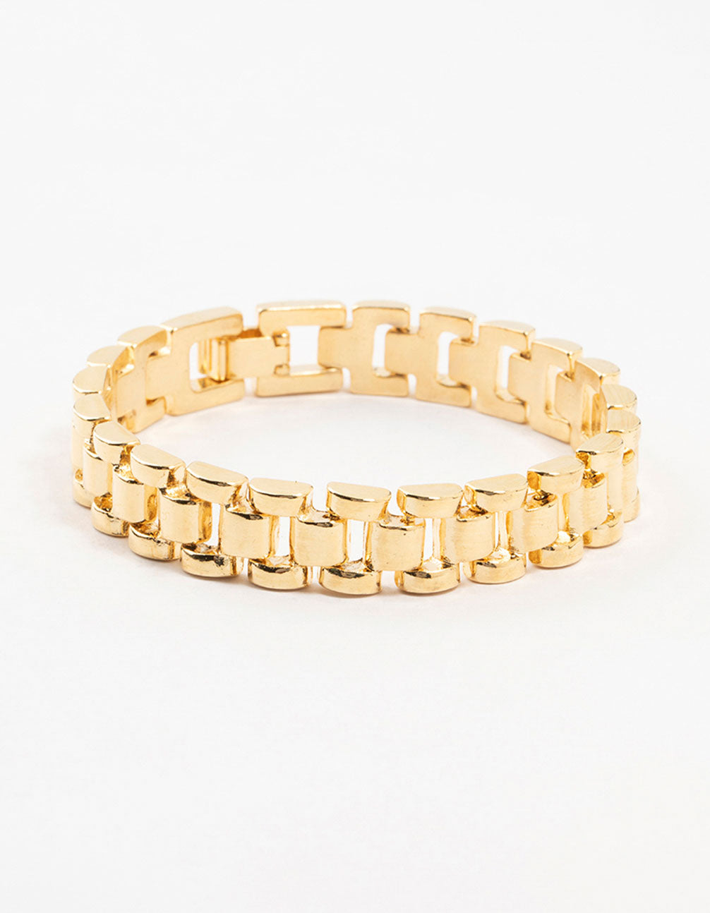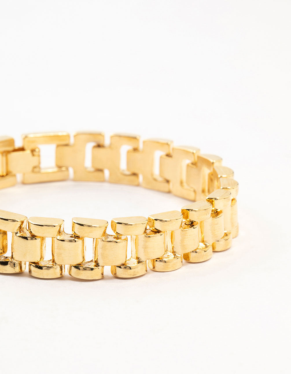Turn heads with this fun gold-plated watch chain bracelet. Wear it solo for a bold statement or layer it with other bracelets for a chic, layered look. This dazzling watch chain inspired piece is the perfect way to make a lasting impression.