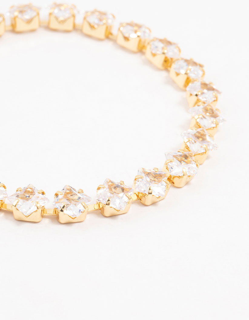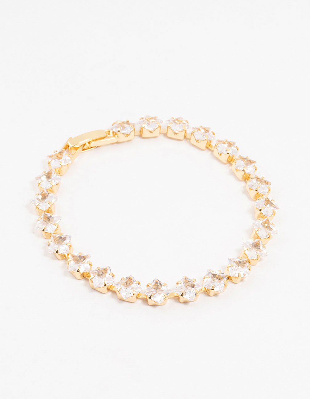 Gold Plated Princess Cut Cubic Zirconia Bracelet
