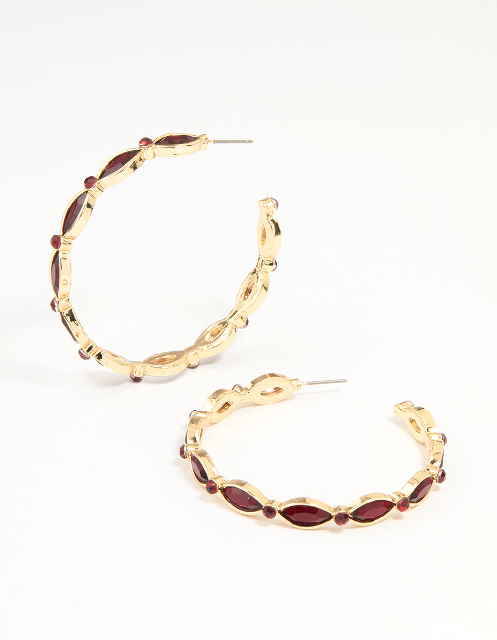 Add a splash of elegance to your look with these Gold Red Stone Marquise Hoop Earrings. These stunning hoop earrings feature a sleek marquise-inspired design, paired with vibrant red stones for a bold yet classy finish. Perfect for dressing up your everyday outfits or adding a touch of glamour to evening wear, they're versatile and eye-catching. Style them with a flowy dress for a chic vibe or pair with tailored separates for a polished look. Whether it's a casual brunch or a special occasion, these earrings are your go-to accessory for effortless sophistication.
