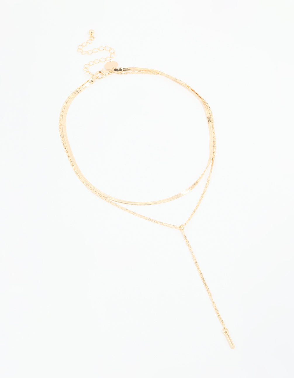 Gold Snake Chain Layered Y-Necklace Gold Snake Chain Layered Y-Necklace Gold Snake Chain Layered Y-Necklace