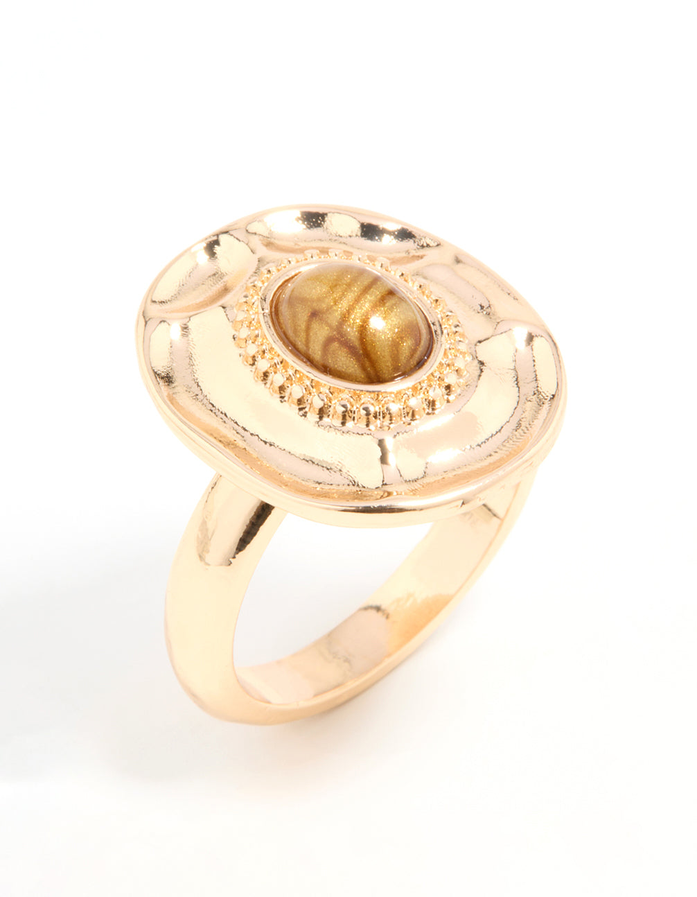 Add a touch of timeless elegance to your jewellery collection with this Gold Stone Oval Statement Ring. This ring features a bold oval stone centre design, perfect for making an impression. The gold-tone finish adds a vintage-inspired charm, making it a must-have accessory for any occasion. Whether you're dressing up for a night out, elevating your workwear, or adding sparkle to your casual outfits, this ring is the perfect match. Pair it with flowy dresses, tailored blazers, or even your favourite jeans-and-tee combo for a chic, effortlessly stylish look. Ideal for anyone who loves standout rings with a classic twist, it's a versatile piece that's sure to turn heads!